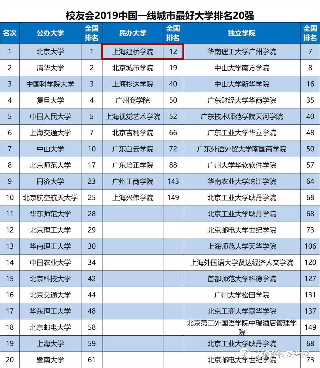 校友会榜单揭晓 建桥位列一线城市最好民办大学榜首