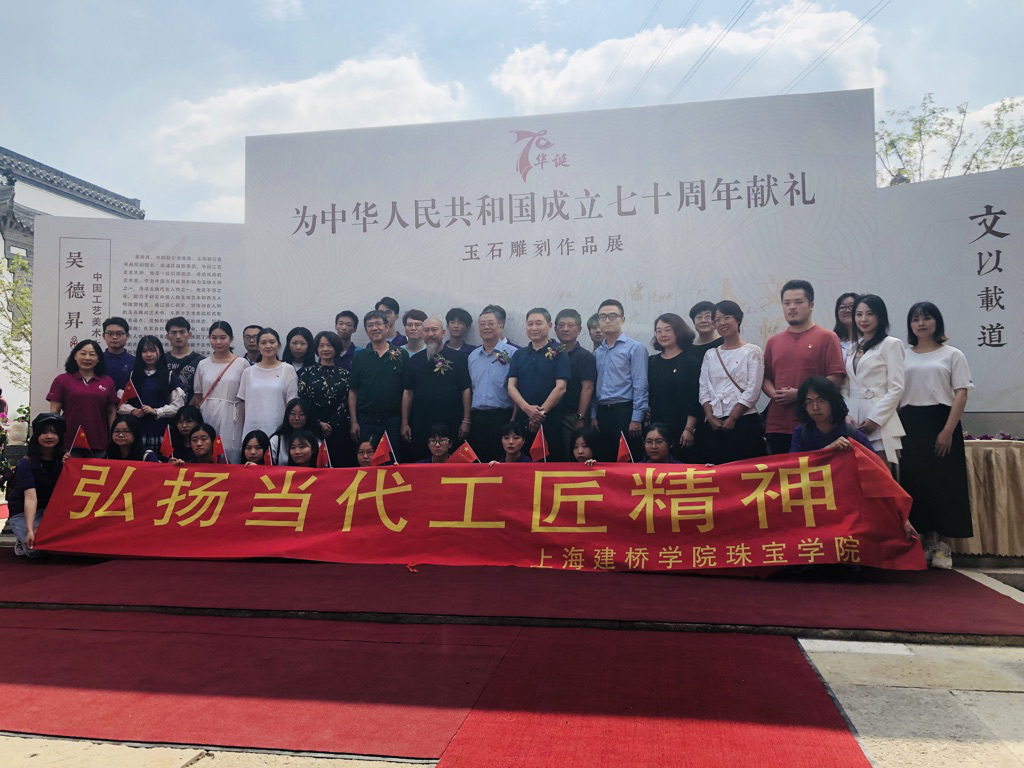9月29日中午,上海建桥学院校领导、珠宝学院领导以及院系主任携学生参加吴德昇的《文以载道,匠心传世》玉石雕刻作品展,以传播中国优秀传统文化,弘扬精益求精的工匠精神为,向中国人民共和国七十华诞献礼。开幕仪式后,学校师生随吴德昇大师进入展馆参观。展览涵盖了吴德昇创作生涯不同时期、各种代表性题材五十余件艺术作品,全方位体现了大师对于传统与艺术、时代与生活的理解及感悟。展览中件件极具创意、工艺精致的作品不仅体现了当代中国艺术家的精湛的技艺水平、高深的艺术修养,更是展现了国之大匠的文化自信。参观过程中,学子们与专业老师深入交流了玉雕相关的知识。通过与大师零距离接触,学生们深刻体会到潜心专研的职业意识与力求极致工匠精神。俞晓光副校长也向现场参观的学生提出了向大师作品学习的要求。他希望同学们多实践,多琢磨,怀有工匠精神,具备专业素养,练好内功,增厚校之内涵,国之底蕴。据悉,我校自2016年成立上海建桥学院海派玉雕人才孵化平台-吴德昇大师高层次文化艺术人才工作室。该文教结合项目中,学校携手玉雕泰斗吴德昇进入高校课堂实践,以玉雕名师工作室为人才孵化平台,通过玉石材质鉴别、玉石雕刻理论知识与实践技术等系统