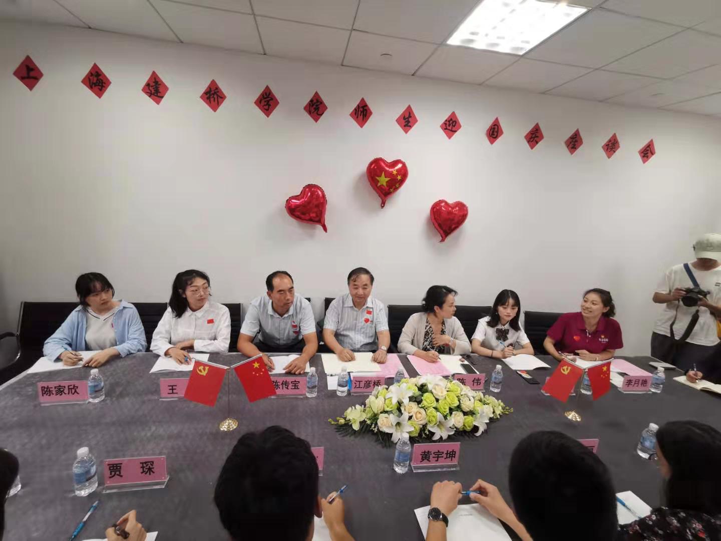 10月1日上午庆祝中华人民共和国成立70周年大会隆重举行,中共中央总书记、国家主席、中央军委主席习近平出席大会并发表重要讲话,庆祝大会后,举行了盛大的阅兵式。校领导朱瑞庭、江彦桥、夏雨、陈伟,学校“不忘初心、牢记使命”主题教育领导小组办公室成员及留校师生在大礼堂集中观看庆祝中华人民共和国成立70周年大会、阅兵式直播,共同为祖国庆生,为祖国自豪,为祖国祝福。直播结束后,校领导分成两组与师生交流座谈,就观看庆祝大会展开了热烈的交流讨论。校长朱瑞庭表示,新中国成立70年来所取得的辉煌成就,昭示了一条颠扑不破的真理,那就是,中国共产党是我们各项事业的领导核心。中国特色社会主义进入了新时代,我们要增强“四个意识”,坚定“四个自信”,做到“两个维护”。我们要扎根中国大地办大学,全面落实立德树人根本任务,书写好教育发展奋进之笔,回答好学校改革创新之卷,加快一流民办大学建设,为培养德智体美劳全面发展的社会主义建设者和接班人作出新的贡献!党委书记江彦桥表示,作为高校教育工作者,我们要更加紧密地团结在以习近平同志为核心的党中央周围,以习近平新时代中国特色社会主义思想为指导,把习近平总书记的重要讲话精神、人
