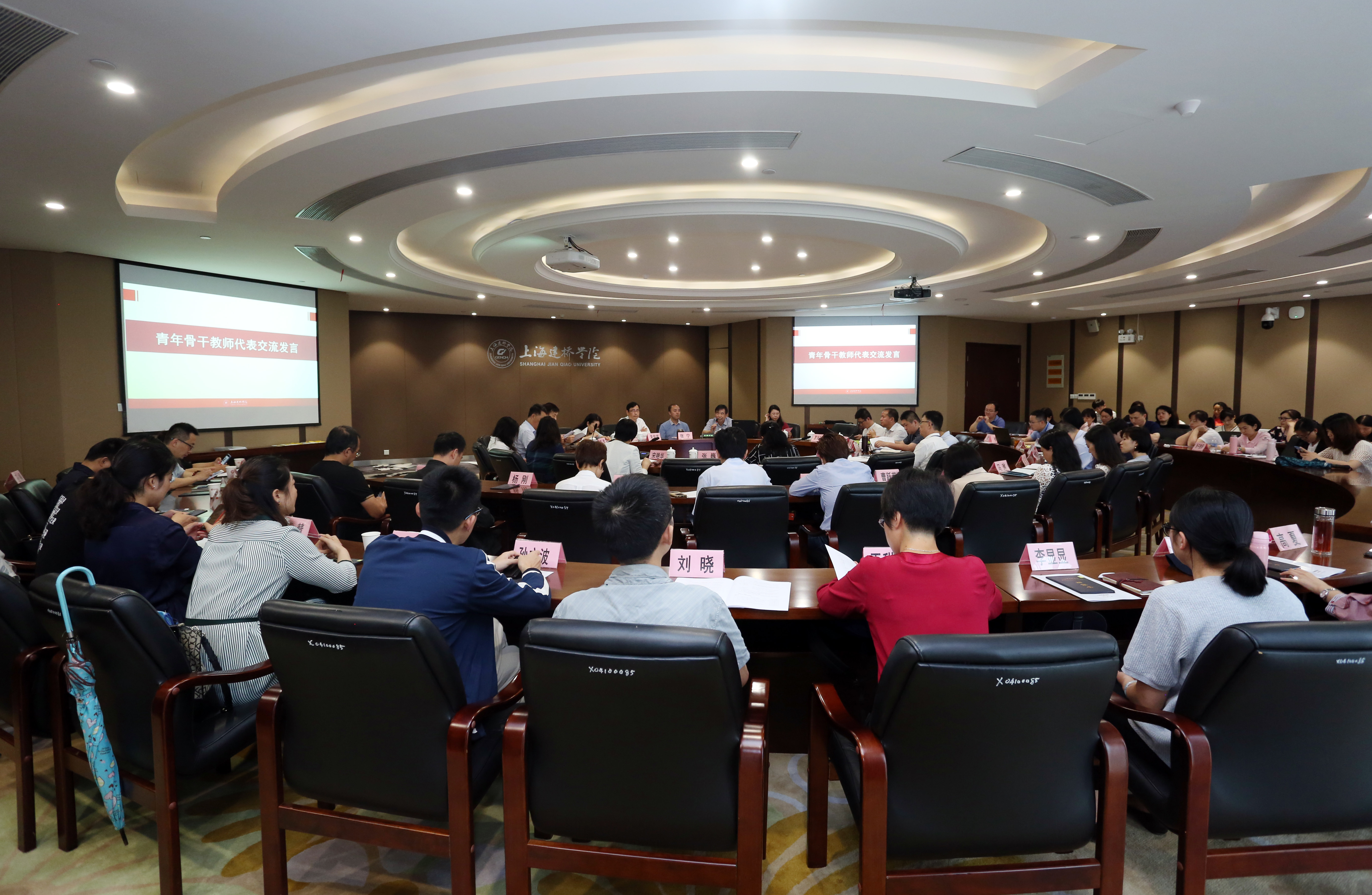 6月21日,青年骨干人才培养计划总结暨2018年专业技术职务聘任会在M612会议室举行。校长朱瑞庭,各学院、各职能部门领导,骨干教师、晋升专业技术职务教师近110人出席本次会议。会议由人事组织处副处长施荣瑜主持。会议伊始,人事组织处处长张宁宣读上海建桥学院2018年晋升专业技术职务名单,校专业技术职务聘任委员会主任朱瑞庭为晋升专业技术职务的教师颁发聘书。2018年,我校共有4名教师晋升正高、14名教师晋升副高、33名教师晋升中级职称,为近5年来晋升高级职称人数最多的一年。随后,信息技术学院谷伟、艺术设计学院汤美娜、商学院王晨岑、校办范培英分别作为教师、思政和行政代表作交流发言。他们各自分享了进入骨干计划以来,在师德师风、教学科研、育人工作、管理工作、自身专业发展等方面取得的成绩和进步,并感谢学校为青年教师成长搭建的各种平台和提供的优质资源。艺术设计学院院长葛洪波代表培训团队交流了二级学院如何做好骨干青年教师的培养。他提出要配合学校政策,制定学院青年骨干教师的激励办法,找准抓手,加强过程管理,组织多种形式的交流活动来助推青年骨干教师成长。机电学院都海良副院长作为指导教师代表交流了该如何关