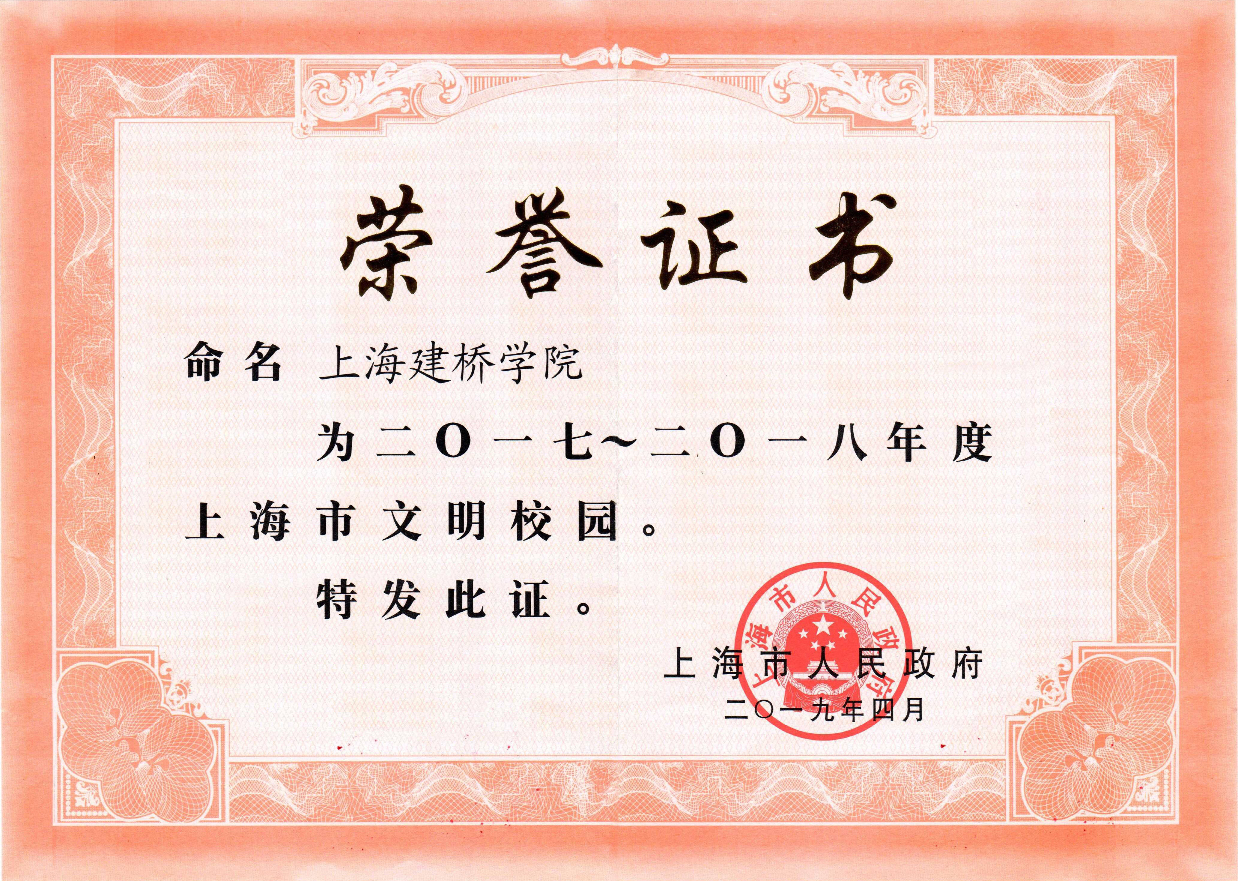 2017—2018年度第一届上海市文明校园名单揭晓,我校喜获市文明校园称号。上海市文明校园(原上海市文明单位)每两年评比一次,是上海市精神文明创建中覆盖面最广、影响力最大的评比活动。自被评为上海市文明单位以来我校连续十六年第八次获得上海市文明单位(文明校园)称号。自首届文明单位创建以来,学校高度重视文明校园创建工作,坚持以习近平新时代中国特色社会主义思想为指导,贯彻党的十九大精神和全国教育大会精神,以雷锋精神为引领,把卓越建桥计划作为内涵建设重要抓手,建立学校质量文化,不断固基础、强特色,积极培育和践行社会主义核心价值观,不断推进一流民办大学建设向前发展。一、强化思想引领坚持立德树人学校把全面深入持久学习贯彻习近平新时代中国特色社会主义思想和党的十九大精神作为首要政治任务,坚持正确办学方向。开展“新时代教育思想大学习大讨论”。贯彻落实全国教育大会精神和教育部本科教育工作会议精神,牢固本科教育的基础和核心地位,提升本科教学质量。加强顶层设计,完善制度建设。实施《卓越建桥计划》,学校始终将学生的创新创业能力和就业竞争力作为学校的核心竞争力来培养,培养贯穿人才培养全过程,融创新创业教育于专业