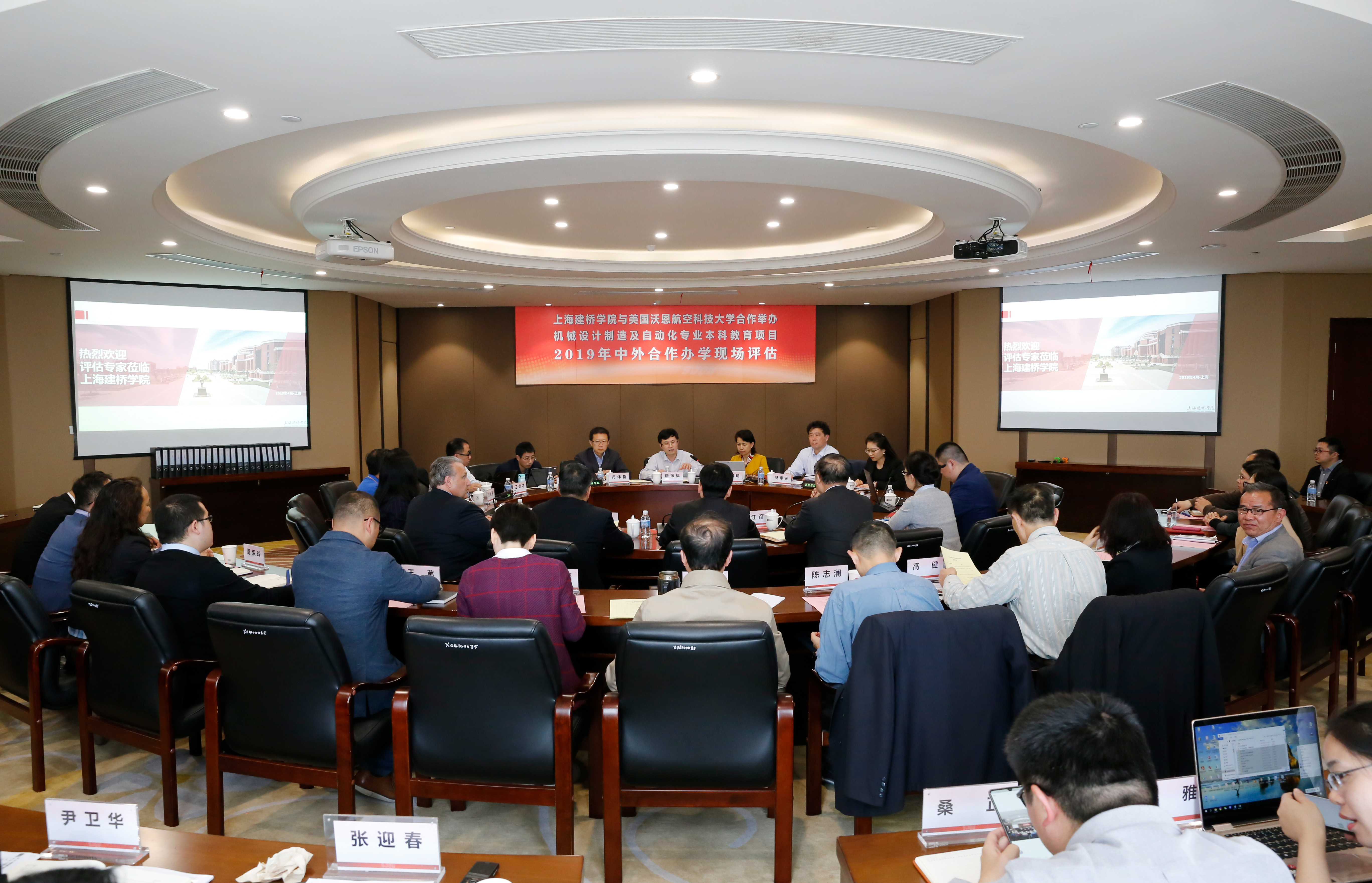4月10日下午,我校与美国沃恩航空科技大学合作举办的机械设计制造及自动化专业迎来教育部中外合作办学现场评估,专家组冯伟哲教授一行8人莅临我校。本次现场评估是对该专业办学现状及未来发展的一次全面检查,学校对此给予了高度的关注和重视,多次召开评估协调会,商学院对项目办学情况进行详细梳理,形成评估支撑材料和汇报材料。校长朱瑞庭、党委书记江彦桥、副校长周健儿、各职能部门领导及商学院、机电学院领导教师出席本次会议。首先,朱瑞庭从学校的办学理念、专业的基本概况、培养目标和培养方案、项目管理、培养条件、师资队伍、教学组织、社会效益、办学特色、党建工作等方面对该项目进行详细介绍。专家就相关问题与在场领导及教师进行了深入交流,并抽查了评估材料,对教师和学生进行访谈。通过本次评估会议,与会人员认真听取专家意见与问题,并以此为契机,将项目发展落到实处,从专业建设、师资队伍建设、教学质量监控等方面不断改进,为中外合作办学提供有力的保障,为培养航空维修领域应用技术型人才做出贡献。