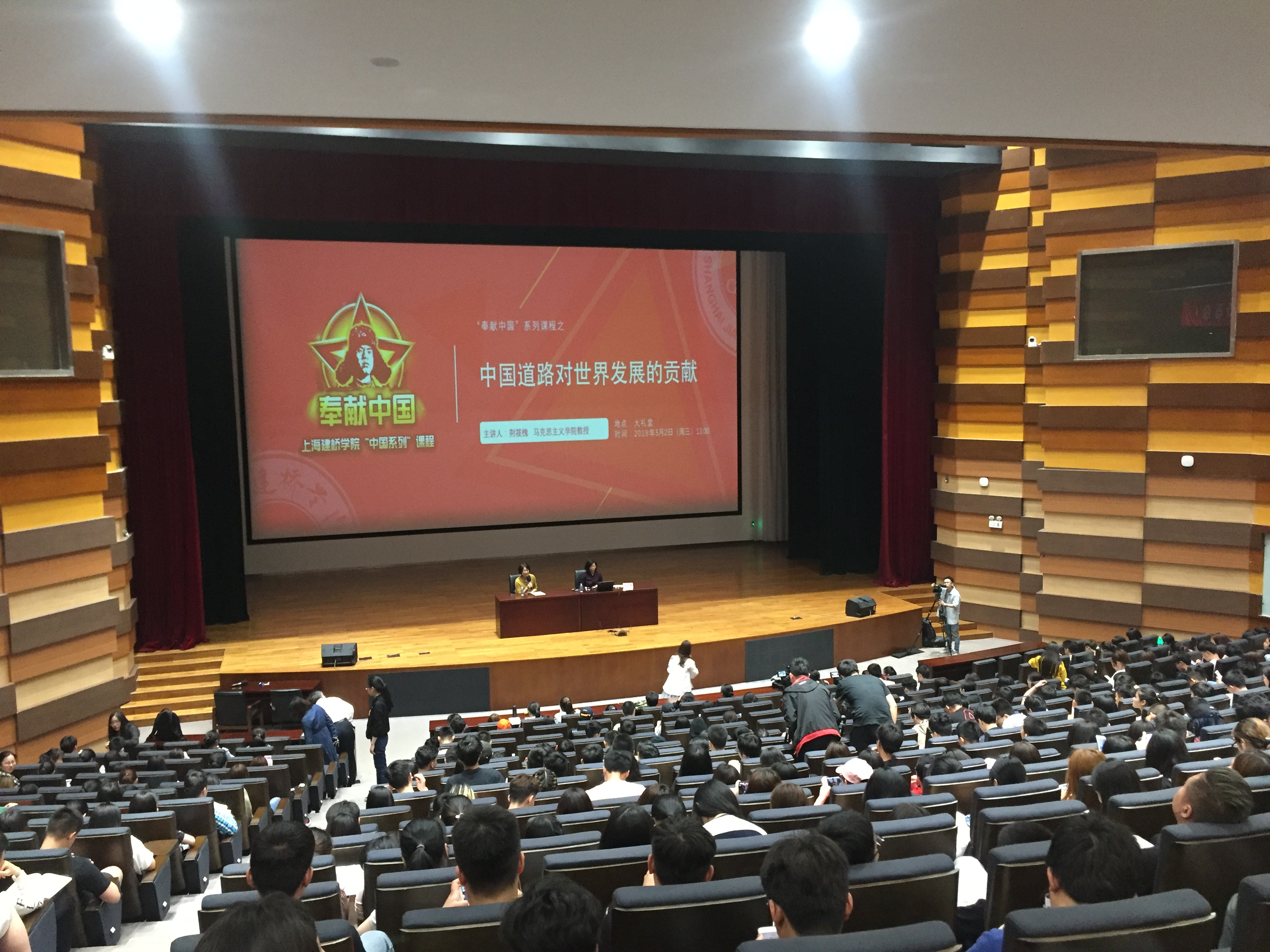 中国的发展对世界会产生什么影响?中国的发展对世界又有什么贡献?5月2日,我校“奉献中国”系列课程第十二讲在校大礼堂开讲,马克思主义学院副院长荆筱槐教授主讲中国道路对世界发展的奉献。新中国成立以来,我们先后解决了“挨打”和“挨饿”的问题。如今中国的崛起,却面临“挨骂”的新问题。解决这个新问题,必须讲好中国的故事,而讲好中国经济发展,特别是中国对世界经济的贡献是一个重要的视角。荆筱槐副院长从“中国经济发展对世界的贡献”“中国文化对世界文化的影响”“中国发展中彰显的人道主义”“构建以和平与发展为主题的人类命运共同体”等四个方面全面系统论述了中国道路对世界发展的奉献。中国是全球经济增长的主要贡献者,年均贡献率达到30%以上,超过美国、日本以及欧元区国家的总和;中国是全球减贫事业的主要贡献者,贡献率超过70%,创造了人类历史上的奇迹;中国是维护世界和平的主要贡献者,成为安理会五常中派出联合国维和人员最多的国家,维和经费出资居世界第二位。事实证明,中国的发展正改变着世界,中国的发展不断为世界发展带来福音。中国道路使中国主要靠自己的力量解决了自己的生存问题,即它解决了占世界总人口约四分之一的中国人吃