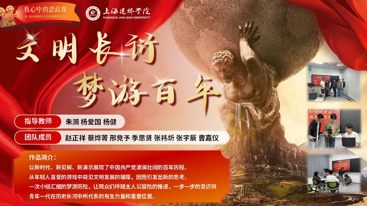 日前,由教育部高校思政课教学指导委员会主办的“我心中的思政课”——第八届全国高校大学生微电影展示活动获奖名单揭晓。我校马克思主义学院师生团队脱颖而出,凭借优秀作品《文明长衍·梦游百年》荣获全国三等奖,展现了我校思政课教育教学的深厚积淀与创新活力。本次微电影展示活动共有1006所高校参与,共提交3134部微电影作品。经过激烈角逐,大赛最终评选出长视频组和短视频组多个奖项。我校有10支队伍积极参赛,其中,由朱漪、杨爱国、杨健老师指导,赵正祥、蔡烨箐、邢竞予、季思贤、张祎炘、张宇辰、曹嘉仪7名同学共同创作的《文明长衍·梦游百年》,荣获国赛三等奖的好成绩。该作品以新颖的视角和创意,通过年轻人的游戏元素,生动展现了中国共产党百年的辉煌历程,引导观众思考青年一代在历史进程中的责任与担当。此外,在近日由山东大学主办的首届大学生新文科实践创新大赛决赛中,我校马克思主义学院同样表现出色。本次大赛吸引了全国29个省(自治区、直辖市)、367所高校的17万余名学生报名参赛,项目数近2.5万项。我校共有7个项目晋级国赛,并斩获1项银奖、3项铜奖和3项优胜奖。其中,马克思主义学院推送的《向“新”而行“质”焕新生