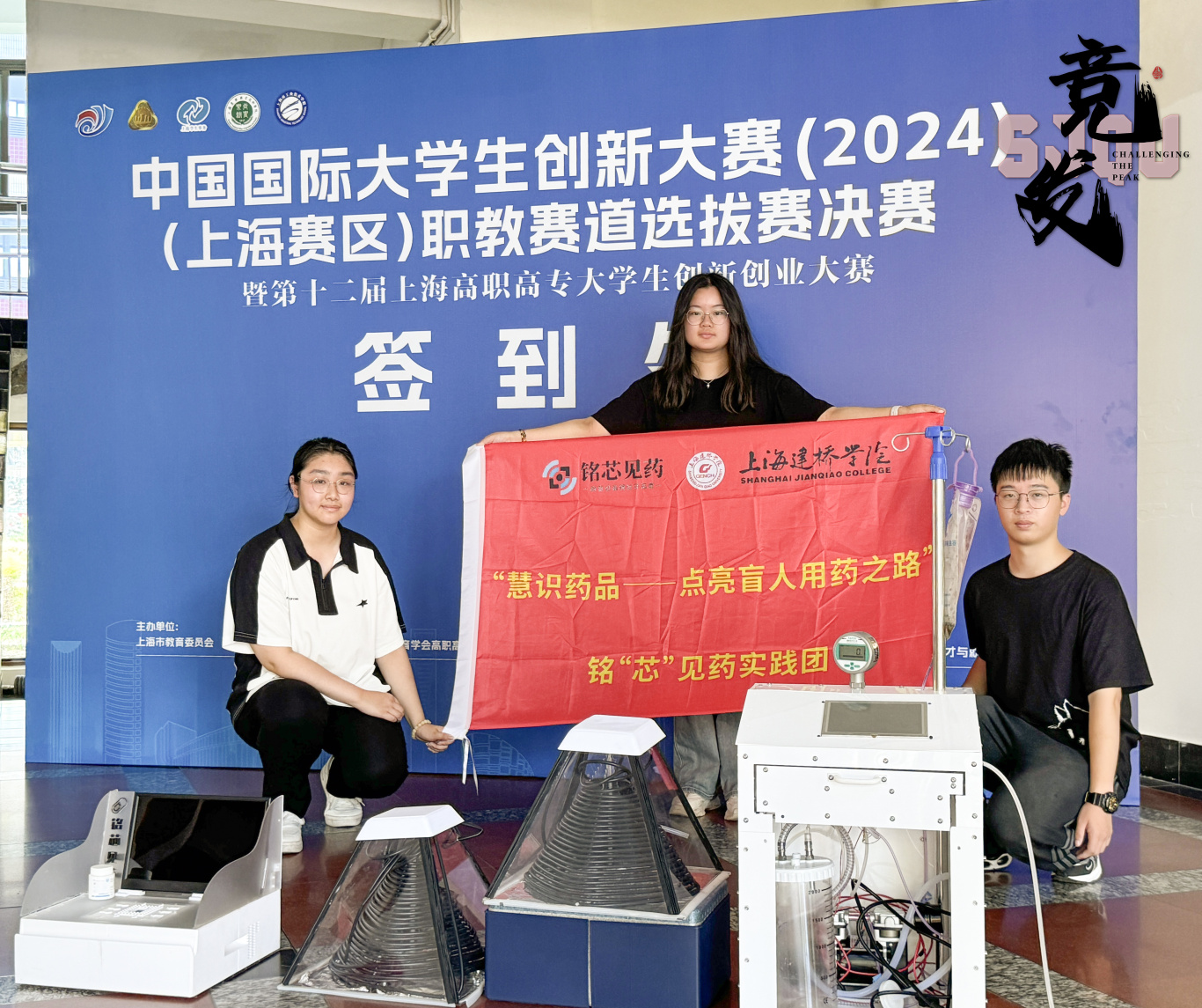 千帆竞发,百舸争流,挑战巅峰,群英荟萃。这是英雄豪杰竞技的舞台,这是智慧火花碰撞的比赛盛会,在激烈的竞争中,建桥人勇开“顶风船”,不惧“回头浪”,激扬“闯”的精神,“创”的智慧,“拼”的劲头,惟其只争朝夕。于风雨之后生彩虹,于挫折之中绽芬芳,于逆境之下出佳绩,御风奋进,书写新篇。这是一个关于3.5亿人的故事,他们是不容忽视的特殊群体——视障人群。作为人口大国的中国,也拥有世界上最多的视障人士。一个鲜为人知的困扰,正悄悄影响着视障人士的日常生活——市面上近90%的药盒都缺少盲文提示。这是一个关于智慧和爱的故事。建桥职业技术学院的“铭芯见药”项目团队,在23级计应专业金挺同学带领下,采用了一种名为WIC的加密算法,利用其独特的扇区原理,创造了一种能够“说话”的药盒装置。这不仅提高了视障人士的服药安全性,还大大减轻了护工的工作负担。从理论到实践,一路走来,该项目获得第九届“汇创青春”上海大学生文化创意作品二等奖、首届“上证杯”上海大学生创新创业大赛三等奖、第六届上海社会组织公益创新创业大赛公益潜力奖、首届“同创杯”全国人工智能创新创业大赛三等奖,最终获得中国国际大学生创新大赛职教赛道金奖。金