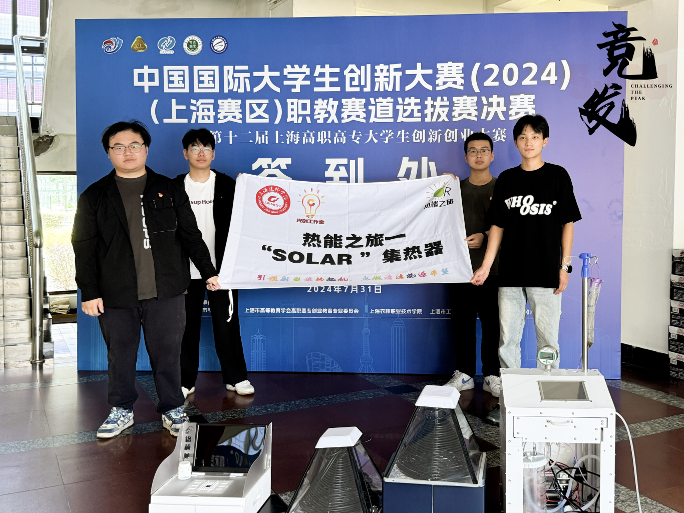 千帆竞发,百舸争流,挑战巅峰,群英荟萃。这是英雄豪杰竞技的舞台,这是智慧火花碰撞的比赛盛会,在激烈的竞争中,建桥人勇开“顶风船”,不惧“回头浪”,激扬“闯”的精神,“创”的智慧,“拼”的劲头,惟其只争朝夕。于风雨之后生彩虹,于挫折之中绽芬芳,于逆境之下出佳绩,御风奋进,书写新篇。在一个追求“绿色生活”的时代,不用传统燃气,利用一款金字塔形状的小装置,仅靠阳光就能转化家庭热水,就能让家家户户热水“源源不断”。这个环保又经济“热水魔法师”,就是职业技术学院史小龙和他的团队,自主研发的Solar的太阳能集热器,他们的项目也将太阳能转化为热能的效率提升到了新高度。这一创新项目在中国国际大学生创新大赛职教赛道中摘得金奖,同时荣获第十七届全国大学生节能减排社会实践与科技竞赛二等奖、首届“上证杯”上海大学生创新创业大赛二等奖、第十四届“挑战杯”上海市大学生创业计划竞赛铜奖,为未来的绿色发展和科技创新注入了新的动力。金奖作品热能之旅项目负责人:史小龙参赛团队:史小龙、赵家照、朱华政、姜宇、王嘉文、王雨昕、施阳阳指导老师:栗小丹、李晶、王君、罗茶根、马冯莉项目简介:为响应全球节能减排的号召,减少能源浪费