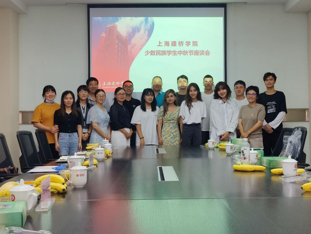 盛世华诞,浓情中秋。佳节来临之际,为使留校过节的少数民族学生度过一个欢乐祥和的节日,同时贯彻落实习近平总书记在第三次中央新疆工作座谈会上的重要讲话精神,进一步了解我校新疆少数民族学生在校的学习、生活情况,加强对我校新疆少数民族学生的政治思想教育,9月18日上午,学校举办少数民族学生中秋节座谈会。学生处张巍处长、张莉副处长,校统战部潘明芸副部长,学处长助理刘伟山,信息技术学院徐娜副书记,新闻传播学院吴成皓副书记,职业技术学院马冯莉副书记,学生处辅导员居麦尼亚孜·吾布力艾山,职业技术学院辅导员庞雪雅以及新疆少数民族学生代表参加此次会议。在疫情防控常态化形势下,同学们积极响应政策,留校就地过节,这对于很多新生少数民族同学还是第一次。座谈会上,同学们踊跃发言,纷纷介绍了个人情况、家乡风土人情、到校生活适应情况等。大家表示,虽远在异乡,但依然能感受到节日的温暖,体会到浓浓的温情,感谢学校的关心照顾。学生处处长张巍代表学校对少数民族同学表示节日的慰问与关怀,他认真倾听了同学们的需求,帮助他们解决困惑以便更好的适应大学生活,更好成长成才。他也向与会同学提出了三点殷切期望:一是希望他们踏实进取,加强学