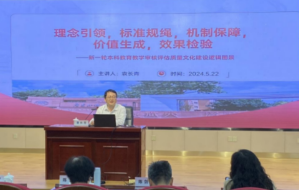 会议第一项由来自广东外语外贸大学的袁长青教授进行主题为“新一轮审核评估视角下的教育质量文化建设”的讲座。袁教授指出树立国际先进的质保理念以引领质量文化,主要是全面质量管理理论和OBE教育理念。制定明晰健全的质量标准以规绳质量文化,结合专业建设的国家标准和本校规章制度来建立健全的质量标准。建立运行有效的质保机制以保障质量文化,学校应设有能够独立行使监控职责的质量监控部门,明确其职责任务,建立一支水平高、数量充足、结构合理的质量监控队伍,对日常教学工作进行检查、监督和指导,不断加强教学督导队伍建设。塑造师生共同的价值追求以生成质量文化,学校要构建自觉、自省、自律、自查、自纠的大学质量文化,把其作为推动学校不断前行,不断超越的内生动力。开展“五个度”的调查以检验质量文化。完善保障体系“六有”要素,促成质量保障从监控走向支持服务、从经验走向科学、从制度走向文化。同时,注重保障体系的不断完善和迭代升级,加强督导评价与基层教研活动和教师发展工作的联动,推动从监督控制转向支持服务;逐步推进质量保障的重心从校级、院级下移到基层教学组织,努力实现从经验走向科学、从制度走向文化。