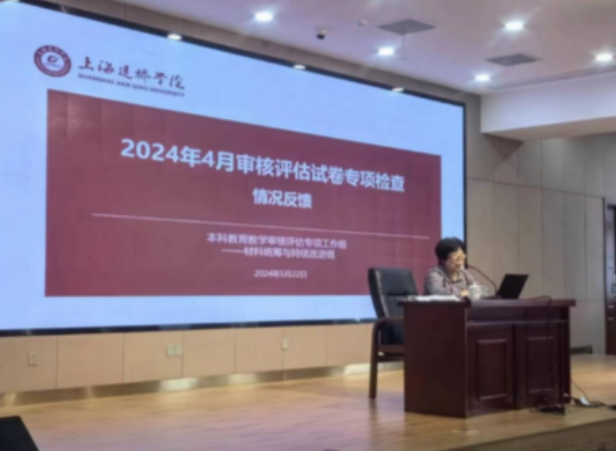 会议第二项,由陈峥副校长介绍2024年4月审核评估试卷专项检查反馈。陈校长介绍了本次试卷抽查的工作背景和完成情况,共抽取83门课程的期末考试试卷761份,必修课程占比达到90%。本次评价依据是出卷的编制、批阅、归档等工作。出现的问题有试卷编制的规划化问题、专业性问题、评分偏差、归档材料缺失等问题,建议在试卷的全流程规范性管理、过程性考核的指导和管理、加强专业性等工作上进行整改。