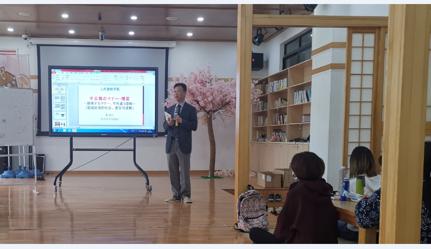 学习外语不仅仅要熟练的掌握,单词,语法,课文等基础知识。对外语背后的文化的理解也同样重要。此次讲座对中日语言,中日文化进行了比较讲解,开拓了学生的国际视野,提高了学生对日语学习的兴趣。