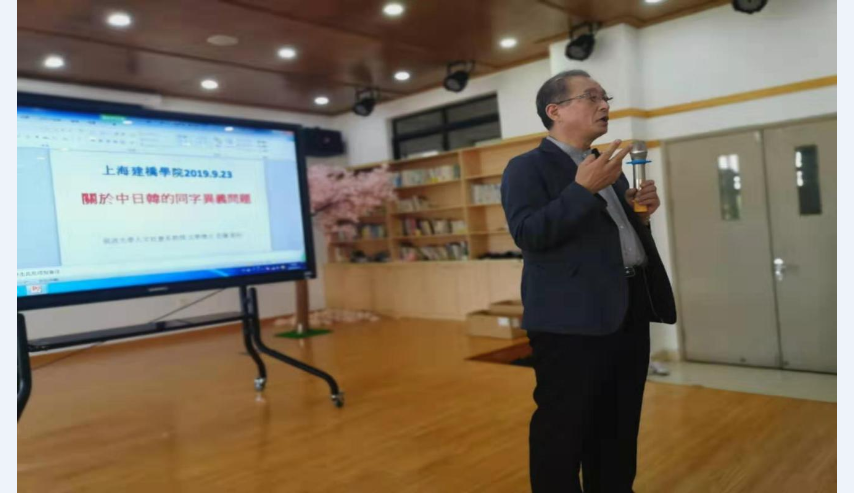 9月23日下午,外国语学院日语系和科研处联合主办的第343期“百家讲坛”在外国语学院日语情景教室举行,讲座主题为“中日韩同字异义论”。来自筑波大学人文社会系佐藤贡悦教授和人文社会系严锡仁副教授分别以“关于中日韩的同字异义问题”,“超越国境的礼仪,差异与误解”为题进行了讲座。日本语学院16级,17级本科班的学生听取了此次讲座。