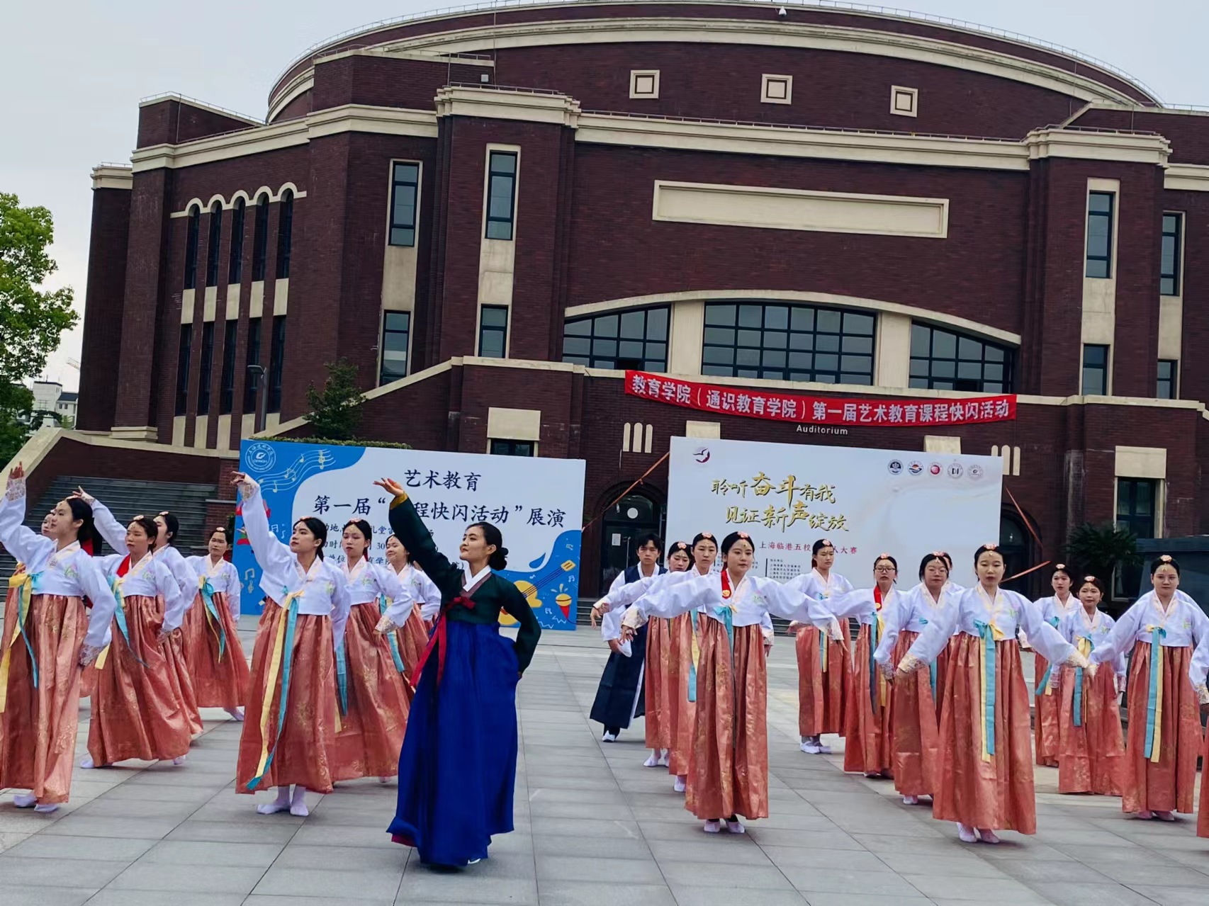 教育学院(通识教育学院)秉承学校OBE育人理念,每学年在大礼堂开展“课程展演”活动、“校园快闪”活动、师生书画展等多场。“课程展演”活动通过艺术选修课学生的表演,展示礼仪、声乐、舞蹈、话剧、瑜伽等课程的教学效果,同时通过书法、篆刻、绘画、扎染、插花等课程学生的作品展出检验学生学习成果;“校园快闪”活动、师生书画展让美育成果与全校师生零距离接触,展现艺术魅力,提升学生艺术素养,增强学生自信。