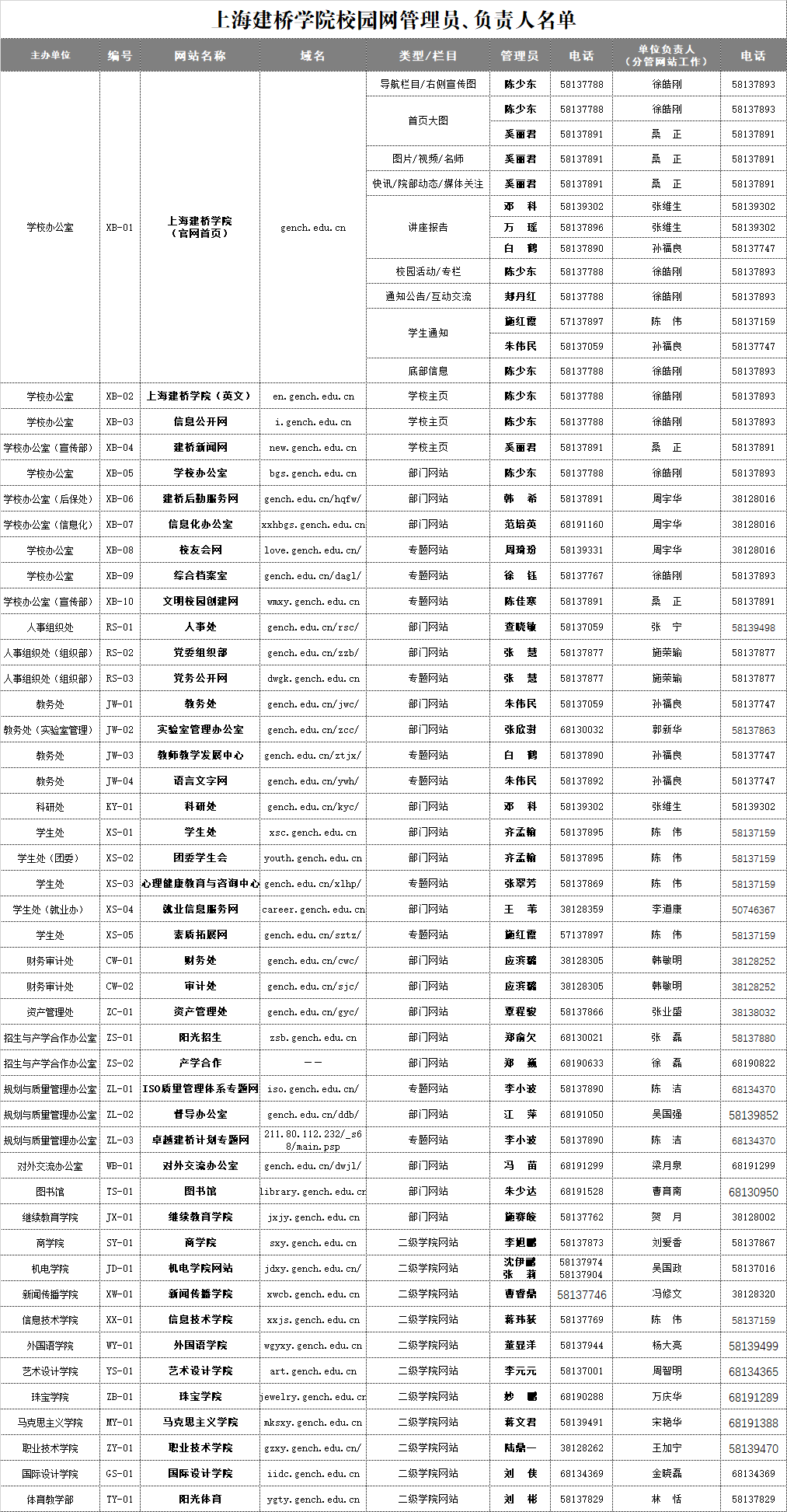 各二级学院、体育教学部、部门,党委各部门、各总支:学校网站是学校对外宣传、教育教学的重要窗口和平台,是学校宣传思想文化工作和信息化建设的重要组成部分。学校网站群由学校网站(包括学校中英文主页、新闻网、信息公开网)和二级网站(包括各二级学院网站、部门网站和各专题网站)组成,承担学校内外宣传、信息发布、展示服务、沟通交流、信息公开等功能。为进一步明确各级网站建设管理主体责任,落实党委网络意识形态工作责任制,加强网站群的管理,特别是提高网站日常维护力度和整体质量,办好各级网站,现将相关事项通知如下:一、明确管理队伍,落实主体责任学校网站群的建设和管理在学校信息化推进领导小组的统一领导下,由学校办公室负责归口协调、管理,并按照“谁主办、谁维护、谁负责”的原则,由各相应的主管部门(单位)分别负责。其中,学校网站由学校办公室总负责,涉及相关栏目由对应部门协助维护更新,党委宣传部对网络意识形态工作进行协同指导。二级网站实行部门分管领导负责制,即开办网站的部门(单位)要明确一名分管领导,对网站建设的整体规划、运行机制、信息安全和内容规范、更新维护负总责,并明确一名具体的工作人员,确保网站的正常运行。党