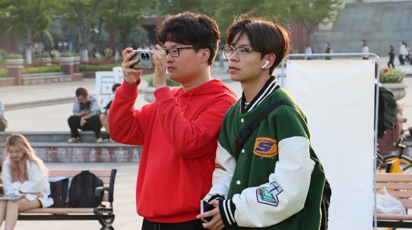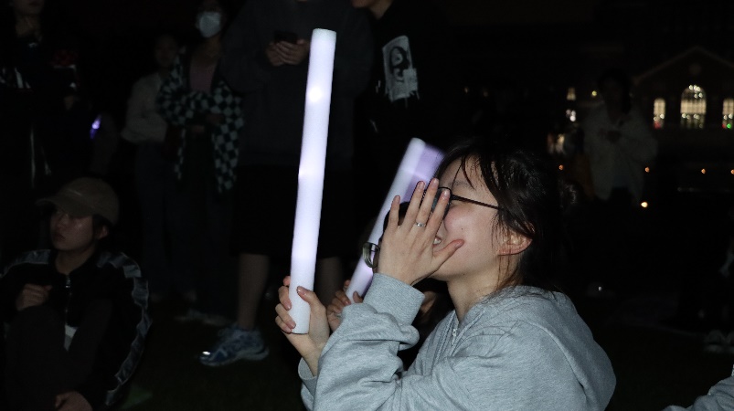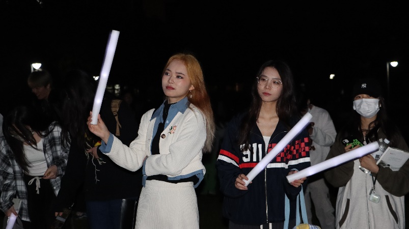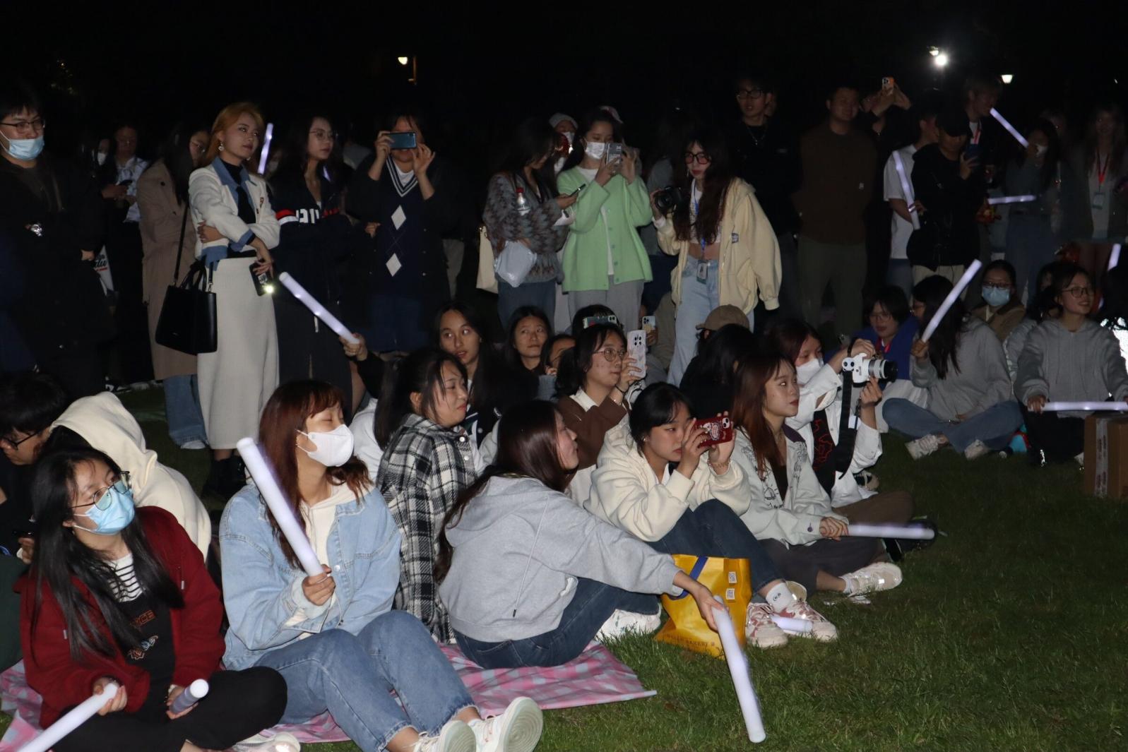 活动在主持人简短开场白中拉开序幕,爱歌社成员们在现场倾情演唱《像疯了一样》《身骑白马》《Gen Z Group》等多种风格的曲目,吸引了一大波同学驻足欣赏。耳机里的宝藏歌曲出现在了眼前,热爱音乐的灵魂相互碰撞,同学们挥舞着荧光棒,跟随着商学院爱歌社成员们的悠扬歌声肆意摇摆着。他们的歌声是否也击中了你的心呢?