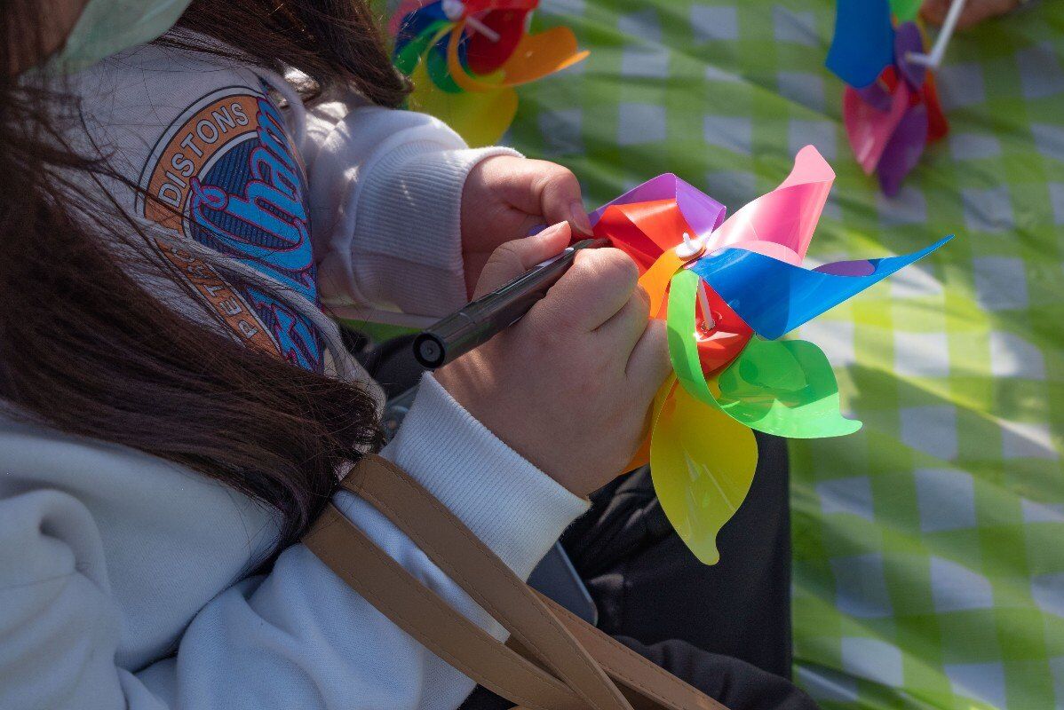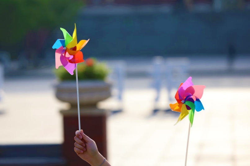 春日来信,好事将临。见字如面的浪漫落笔是丁达尔效应的粉色光晕。温暖的阳光下,同学们用记号笔在风车上记录下自己想写的内容,或喜欢的歌词,或当下的情绪,或还未达成的愿望。微风轻拂,承载着大家美好愿景的风车在草坪上悠然转动,为明媚的春日增添了一道靓丽的风景线。