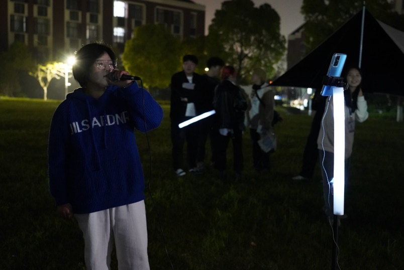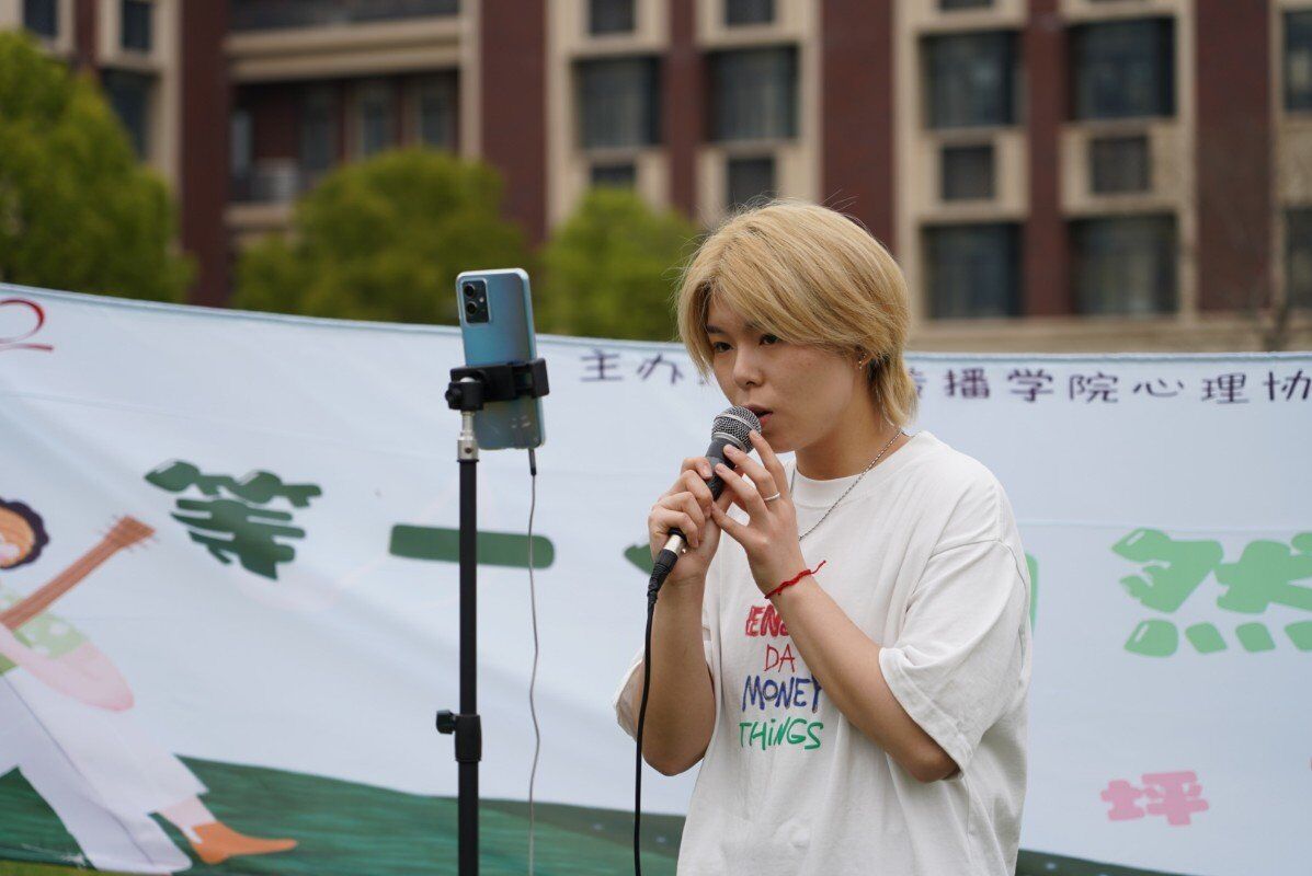 “共情”是耳机传达不出的情绪,在排麦环节中,每位同学似乎都在用属于“自己”的音乐来诉说着属于“自己”的情感,歌声穿透草地,远远地站着看着听着,周围的声音好像都消失了,唯有他们的歌声环绕着每一个人,使人禁地跟随着歌声与旋律哼唱起来。