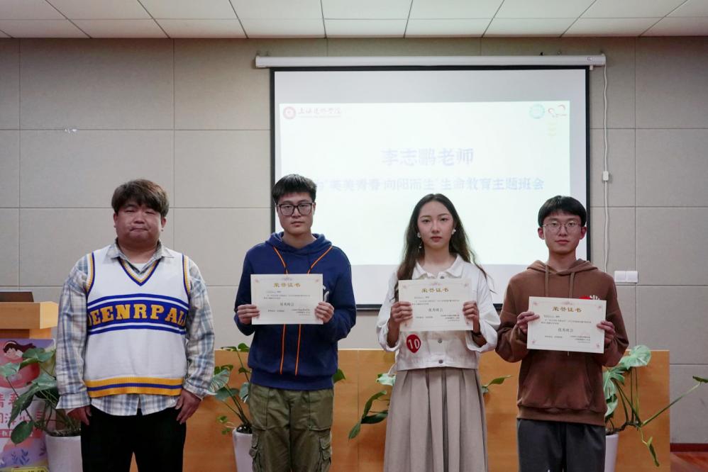 评委发言结束后,比赛进入了尾声,在欣赏完心理微视频大赛的优秀作品后,主持人宣布了本次心理委员技能大赛的获奖选手。由各位老师为“美美青春·润泽心灵”心理健康教育活动季部分活动的获奖同学进行颁奖。