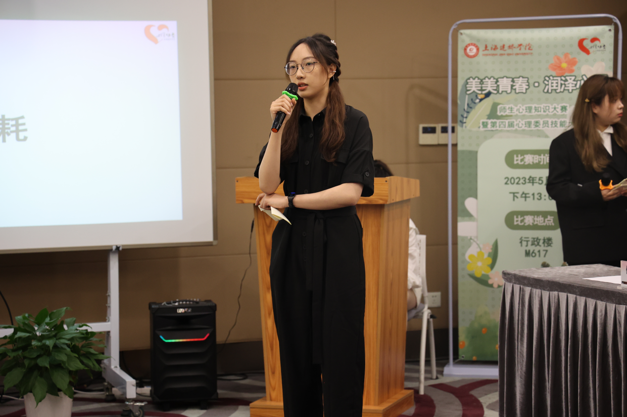 本次大赛共分两个环节,分别为心理知识竞答和心理主题宣讲。在心理知识竞答的环节中,抢答题部分特别考验选手的反应速度与心理健康知识储备量。而代表我院参赛的赵鑫老师和秘书学B22-1班的李颖嘉以迅速的反应与良好的交流合作,及时按下抢答按钮,准确道出问题的答案,干脆利落地拿到了该环节的满分。