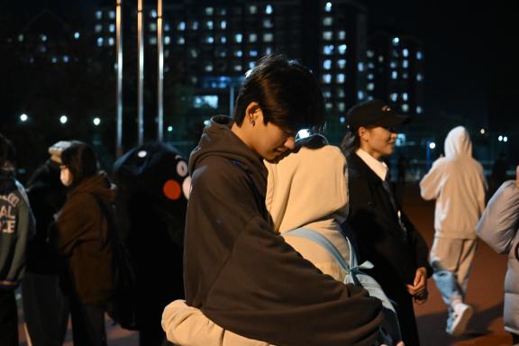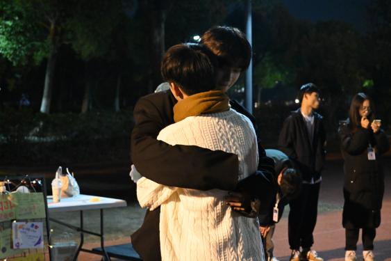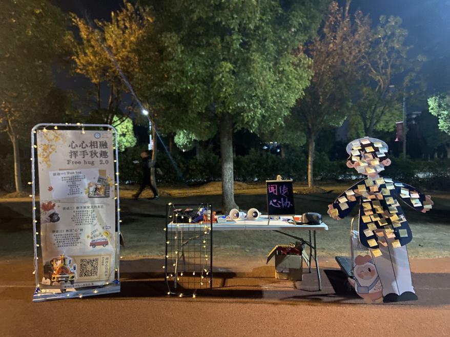 11月13日至11月14日晚,新闻传播学院心理协会在操场顺利开展了“心心相融,挥手秋趣”free hug2.0活动。本次活动通过拥抱的方式,鼓励同学们克服社交障碍,营造了团结友爱、健康温暖的校园氛围,为寒冷的冬夜增添了一幅温暖的景色。希望同学们可以通过拥抱获得力量与自信,勇于面对生活中的艰难困苦。