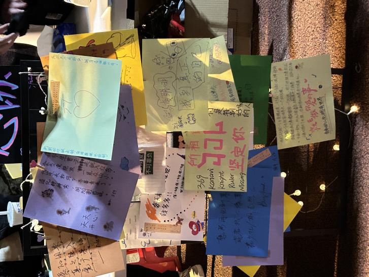 在举行自由拥抱活动的同时,现场也开展着拼贴诗活动和撕掉标签活动。