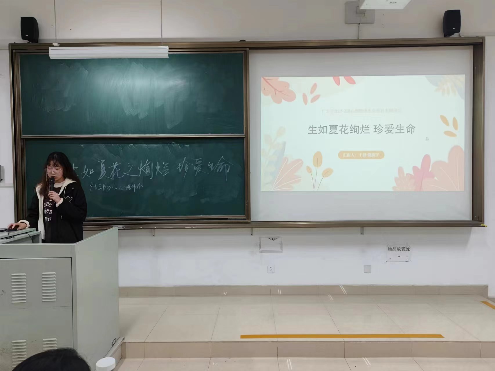 此次班会由广告学B23-2班心理委员于静演讲,从认识生命、生命与死亡两个部分展开。