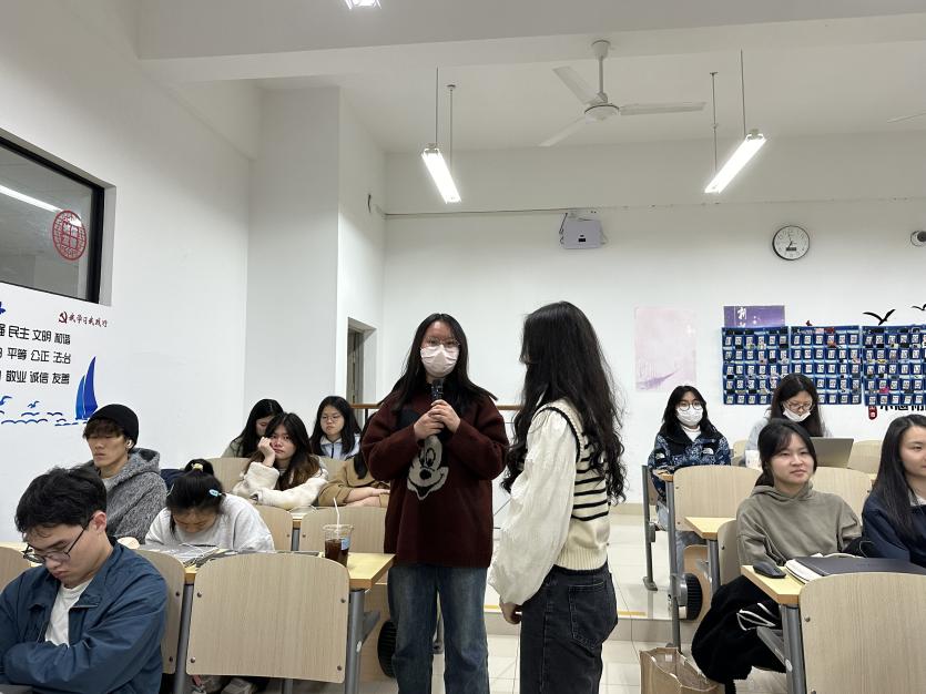 最后进入班会的第四部分——停止内耗,拥抱生命。应佳熙以一段对生命意义的理解,“有的人终其一生都在寻找生命的意义,但几乎大部分人都无法找到。而探索生命意义的这个过程就是生命意义所在”告诉同学们生命的意义。她通过说明生命的重要性深化了同学们对生命意义的进一步理解。