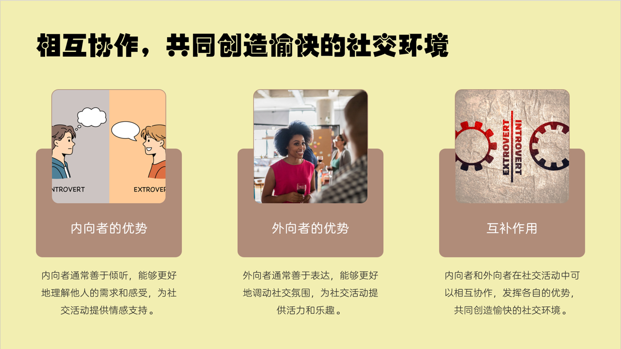 在最后熊荻漫同学为大家做出总结,每个人在生活中都扮演着自己的角色,我们应该尊重差异,拥抱IE的相互关系是一种有益的互补和融合,有助于个人成长、团队合作和社会进步。我们应该尊重和欣赏不同性格类型的人,积极拥抱这种相互关系,共同创造一个更加和谐、包容和创新的社会环境。