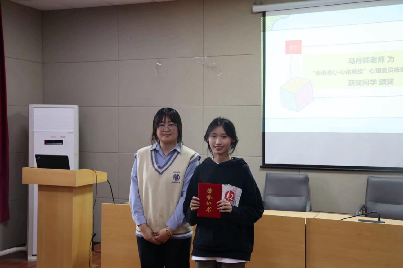 紧接着进入了优秀班会颁奖环节,马丹妮老师为“细语润心·轻裳远行”心理健康主题班会比赛中荣获优秀班会的班级颁奖。他们分别是
