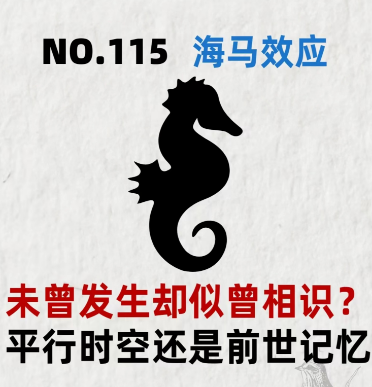人类在现实环境中,突然感到自己“曾于某处亲历过某画面或者经历一些事情”的感觉。依据人们多数忆述,好像于梦境中见过某景象但已忘了,后来在现实中遇上该景象时,便浮现出“似曾相识”的感觉。这就是海马效应,也称“既视感”。它是人类长时记忆的一种特殊类型,可以在短期记忆储存和长期记忆转换之间起到重要的桥梁作用。它可以在各种学习和生活情景中起到关键作用,帮助人们更好地寻求知识、提高能力和保持健康。
