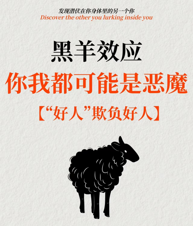 这种现象在心理学上称之为“黑羊效应”,当然,这里的“好人”并不是广义上的做了好事的人,而是指他们都认为自己是好人,做出的行动都出于善意。但他们却不知道,被伤害的黑羊可能需要用上很久甚至一生来治愈因为他们的“善意”而留下的心理创伤。在人性心理中,有这么一个说法,人类所有的趣味、都源于对别人的伤害。所以人们会在无意识中习惯于去联合起来攻击无辜的人,从而获得满足感和优越感。而一旦有很多人参与,又会激发“从众心理”,最终导致源源不断的人加入其中,而黑羊孤立无援。