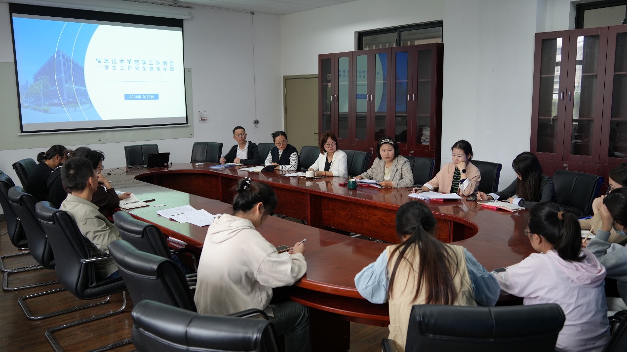 为了贯彻落实上海市教委关于安全工作的部署要求,落实学校安全稳定工作会议精神,10月9日上午,信息技术学院在205会议室召开了学生系统安全稳定工作专题会议,学院党委书记王晨岑、副书记徐娜出席会议,学院全体辅导员参加了会议。会议由徐娜主持。首先,安全横向工作负责人何超杰和心理辅导员李苗老师就校园安全、学生心理安全的角度,将校内外发生的学生具体案例进行了讲解,并解读了做好学生安全工作的方式方法。其中,何超杰老师介绍了防诈骗、消防、涉赌、偷窃、打架斗殴、等校园多发易发的安全事故;李苗老师针对在学生管理中发生的3个心理突发事件案例进行了介绍。学院党委副书记徐娜要求辅导员团队牢牢守住安全工作的底线、红线,不断加强学生安全教育,增强学生的法治意识、安全防范意识和自我保护能力;要坚持问题导向,经常深入学生社区,常态化开展安全风险点排查,彻底整治安全风险隐患;要加强学生安全工作队伍建设,充分发挥学生干部、党员、团员的作用,建立良好的学生安全工作支持体系。希望学生工作系统的同志们要深刻汲取各类安全事故的教训,克服麻痹思想和侥幸心理,时刻绷紧安全这根弦,要以高度的责任感、使命感抓好学生安全工作。最后,学院党