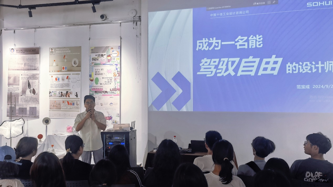 9月25日下午,艺术与科技专业在艺术设计学院展厅举办了一场关于如何成为一名优秀设计师的精彩讲座,艺术与科技专业全体大一学生积极参加了此次活动。该讲座由溯洄设计公司总经理范宝成主讲,他已从事产品设计和品牌咨询工作9年,曾经荣获德国红点,IF,Gmark,中国红星等多项产品设计荣誉;溯洄设计公司作为我院的校企合作伙伴,自2005年成立于上海,专注于工具设计与研发,如今已跻身中国十大工业设计公司之列。溯洄设计范宝成总经理以其丰富的设计经验和行业视角,为学生们描绘了未来优秀设计师的蓝图,以及面向未来的产品设计发展趋势。作为“2019年中国设计业青年百人榜”入选者,范总经理分享了他在中国科学院、张小泉等企业的合作经验,鼓励学生们从传统文化和现代科技中汲取灵感,勇于创新,不断突破设计的边界,追求卓越的作品。他独特尖锐的专业视角、幽默风趣的讲座风格、高互动性的讲座内容很快吸引了同学的踊跃互动,同学们也亲切地称其为宝总,宝总在讲座中也强调了在当今数质化浪潮下,产品设计不仅是外观和功能的结合,更是用户需求与科技创新的交汇点;在快速变化的市场环境中,设计师必须具备敏锐的洞察力和强大的技术基础,才能在全球化