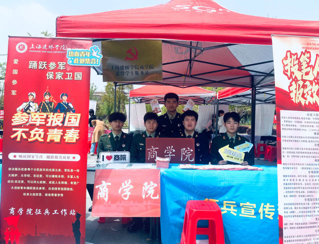 1111MicrosoftInternetExplorer402DocumentNotSpecified7.8 磅Normal0少时立志尚武,长大报国从军。为做好2024年秋季征兵工作,确保适龄青年全面了解征兵信息,掌握征兵政策,营造浓厚参军氛围,激发大学毕业生携笔从戎、报效国家的热情。4月15日,上海建桥学院在雷锋广场以“像雷锋那样当兵,当雷锋那样的兵”为主题开展征兵工作专项宣传,商学院设立征兵宣传点启动2024年秋季征兵宣传工作。上海建桥学院副校长陈伟、学生处处长张巍和副处长张莉莅临现场指导征兵宣传工作,并与担任征兵宣传员的退役学子亲切交谈,对退役大学生积极投身征兵宣传工作表示肯定和赞扬,鼓励退役大学生在学校征兵宣传工作中继续发光发热、贡献力量。征兵宣传咨询活动现场,鲜艳醒目的标语横幅、精美独特的征兵手册,英姿飒爽的退伍老兵,吸引着同学们踊跃前来咨询。活动现场由退伍大学生组成的宣传小分队耐心解答同学们关心的大学生应征入伍优惠政策、学费减免、部队生活及有关报名、体检、政考等问题进行细致解答,使同学们进一步深入了解征兵工作。精准宣传精细发动,全面做好征兵宣传工作。本次活动从多角度展开,