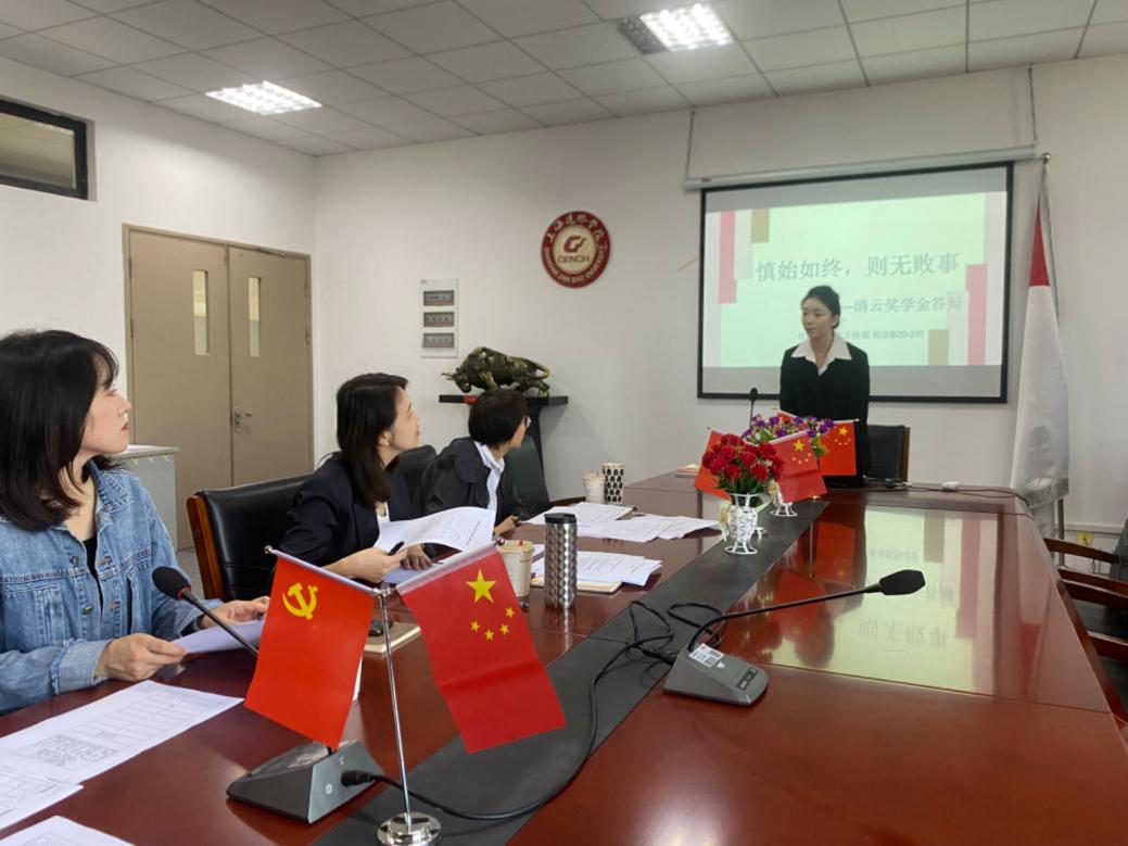 为进一步推进我院学风建设,充分发挥优秀学子的引领作用,鼓励广大学生热心公益、勤奋学习和勇于创新,10月24日外国语学院在229会议室举办了2022-2023学年上海建桥学院清云奖学金评审答辩会。外国语学院党委书记杜鹃、党委副书记伊莉和分团委书记孟娣担任本次答辩会的评委。清云奖学金是由上海建桥学院董事会和创校校长黄清云共同出资设立,有“感动建桥学子”、“建桥学习标兵”和“建桥创新创业之星”三个奖项。经过个人申报、辅导员推荐、学院资格审核等环节,共有王佳英等8位同学从各专业脱颖而出,获得答辩资格。他们分别以PPT的形式展示了在社会公益、学习成绩、学科竞赛、社会实践、创新创业等方面的突出表现,为我们展现了当代优秀大学生的风采。答辩结束后,评委们根据《清云奖学金评定实施办法》SJQU-WI-XS-021(A1)和《上海建桥学院关于开展 2022-2023 学年“清云奖学金”评选活动的通知》的要求,坚持“公平、公正、公开、择优”的评选原则,结合候选人的现场表现、成绩和综合测评排名,最终确定王雨诺、吴静为“感动建桥学子”推荐对象;王佳英、孟然为“建桥学习标兵”推荐对象;张倩为“建桥创新创业之星”推