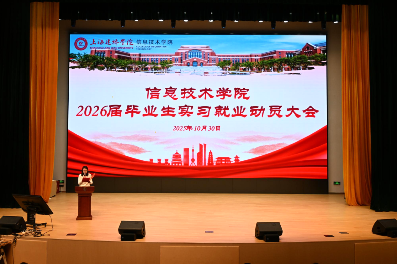 为深入贯彻落实党中央、国务院关于促进高校毕业生高质量充分就业的决策部署,助力毕业生明确发展方向、规划职业路径,10月30日,信息技术学院于大礼堂分本科、专升本两个场次召开2026届毕业生实习就业动员大会。学院党委书记杜鹃主持会议,副院长矫桂娥、副书记徐娜、征兵宣传负责人张峰、校友代表苏浩天、优秀学生代表张博冉、毕业班辅导员出席会议,2026届全体毕业生参会。一、多维导航:构建“政策-安全-能力”全链条赋能体系杜鹃书记在开场中明确,本次大会是学院落实就业工作“一把手”工程的关键举措,旨在通过毕业节点梳理、优质资源整合、精准答疑解惑,为毕业生提供“导航式”就业服务。她强调,当前高校毕业生就业竞争日趋激烈,唯有提前谋划、主动作为,才能在职业赛道中行稳致远。(一)毕业与就业双向部署副院长矫桂娥就毕业与就业工作进行全方位动员部署。她以“毕业”为核心,明确细化各项教学任务,着重强调毕业设计的关键地位。同时,清晰解读学位授予的具体条件,呼吁毕业生密切关注培养计划与学籍异动情况,以敬畏之心严格落实毕业环节的每一项要求。就业方面,矫院长鼓励毕业生既要“敢闯敢试”,主动探索多元就业路径;又要“精准定位”