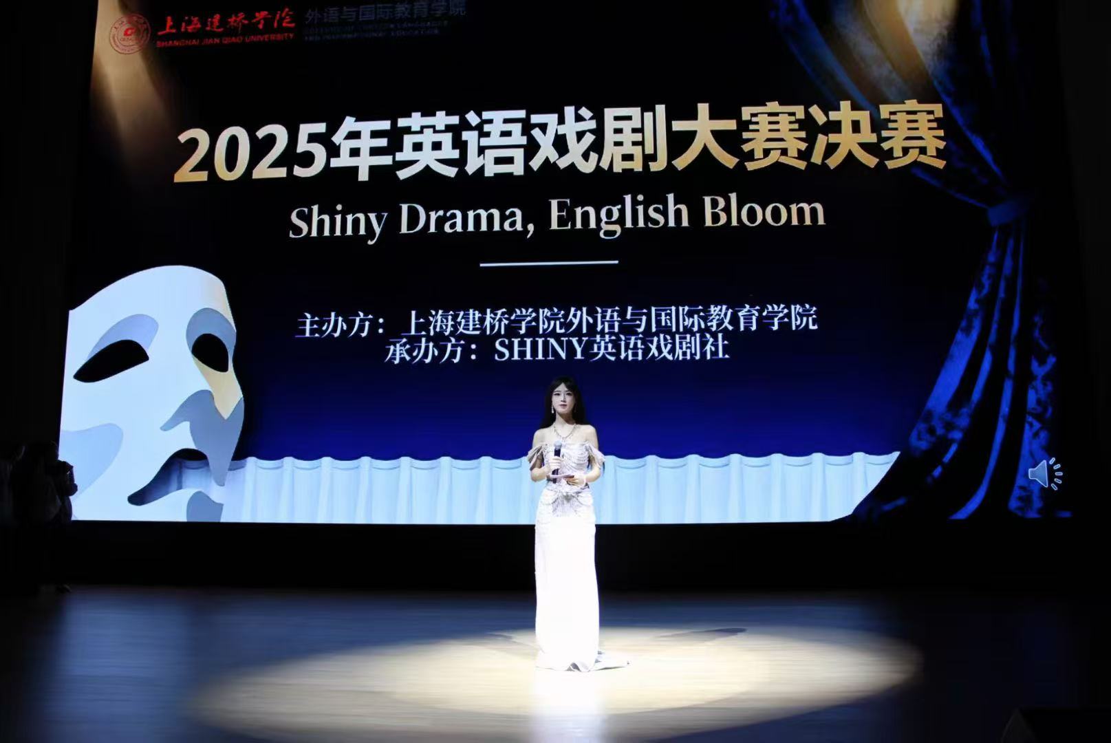 秋意正浓,戏剧之花在建桥校园璀璨绽放。2025年10月28日晚,由上海建桥学院外语与国际教育学院主办、SHINY英语戏剧社承办的2025年英语戏剧大赛决赛在大礼堂华彩上演。从“经典改编”到“原创叙事”,从“个人独白”到“群像演绎”,赛事鼓励学生跳出“背台词”的舒适区,在角色中理解文化,在碰撞中激发创意——而这,正是“英语能力”最生动的注脚。这是一场融汇语言艺术、戏剧张力与青春思考的视听盛宴,学子们以英语为媒,以舞台为镜,呈现了一场文化交融与创意迸发的狂欢。本次决赛特邀外语与国际教育学院英语系主任林安洪,外语与国际教育学院英语系副主任陶然,外语与国际教育学院分团委书记祖晴晴,SHINY英语戏剧社指导老师王嘉怡,外语与国际教育学院戏剧表演老师顾君担任评委嘉宾。他们的目光汇聚成专业的标尺,既丈量着舞台上的语言表达与情感传递,又守护着每一份用英语讲述故事的赤诚。桂冠加冕,精彩瞬间回顾经过激烈的角逐,各个奖项逐一揭晓。让我们一同回顾这些优秀剧目与演员们的闪耀时刻:团队一等奖:《Tough Love》 (SHINY英语戏剧社)演员:邱艺浓 外语与国际教育学院 德语B25-2邱韵郓 健康服务与管理学