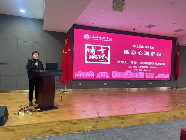 2023年3月23日,由教育学院和科研处主办的上海建桥学院第86期博士论坛——婚恋心理解码在珠宝学院四楼报告厅如期举行。论坛由通识教育学院副院长马莹主持,教育学院全体教师、科研处教师、近150名学生参加了论坛活动。马院长从钱钟书先生的小说《围城》里的一段描述引出论坛的主题——婚恋心理,对主讲人刘泽文博士的学历背景做了简略介绍。刘泽文副教授毕业于中国科学院心理研究所,获理学博士学位,主要研究领域:婚恋关系、亲子关系。刘博士从一组婚恋研究的社会学数据引出大家对婚恋现象背后婚恋心理的思考。接着,他从人际吸引的要素、动态的婚恋匹配观、爱情三元论和社会交换论、依恋方式和自尊对亲密关系的影响等四个方面对现代人婚恋心理进行了深入剖析。他最后指出,现代人想要拥有美满的婚姻,需要调整自己,不要改造对方。随后,他与台下的听众做了互动交流。台下的师生纷纷表示,刘博士的讲解分析到位,为她们今后如何理性面对自己的恋爱和婚姻有了一个清晰的认识。