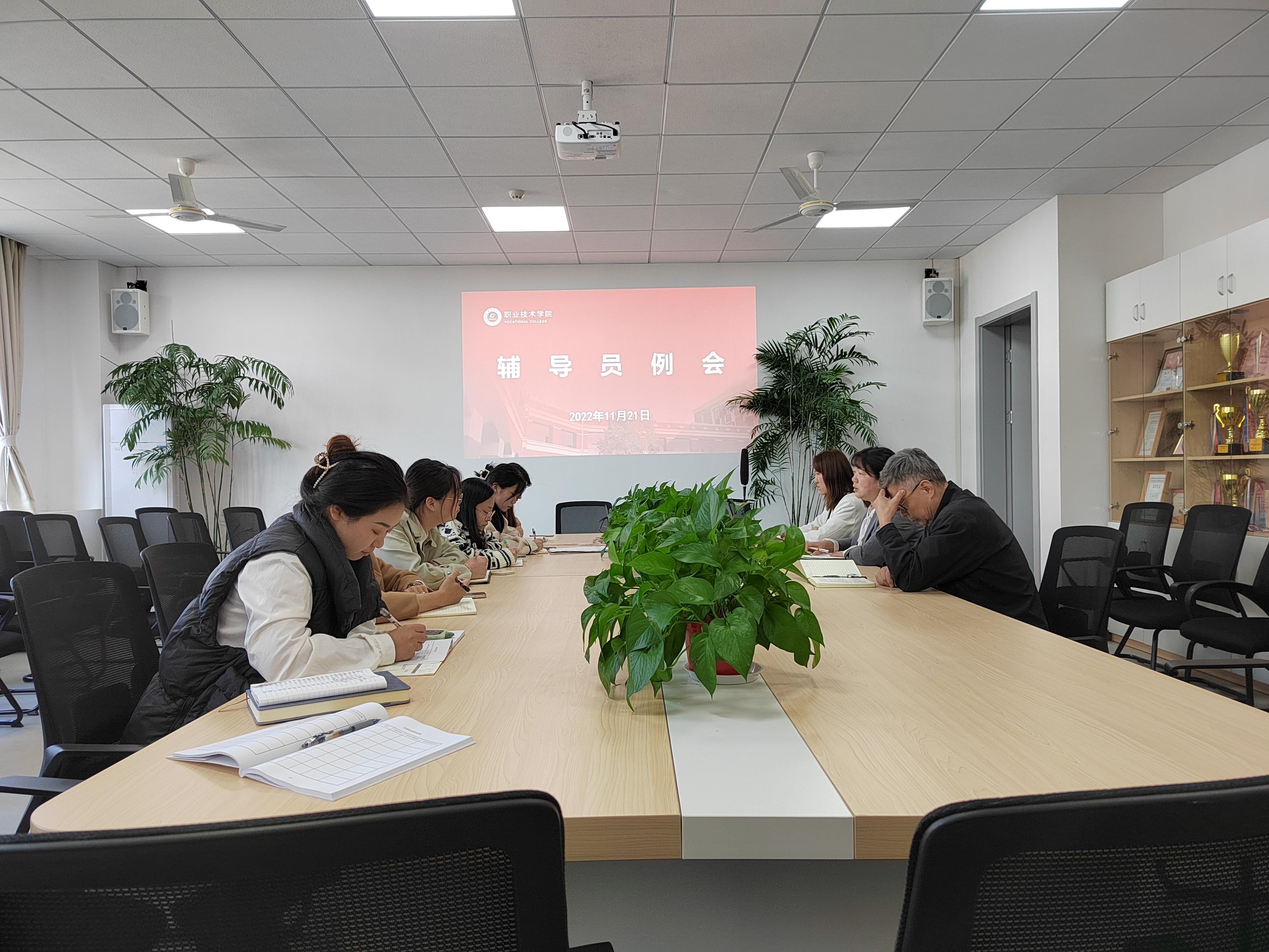 11月21日下午,职业技术学院召开辅导员例会,会议涉及学风节工作安排推进、学院教师学风专题讨论等主题。学院党委书记王加宁、副书记马冯莉以及各年级辅导员参加例会。 为了解我院师生对教育管理各项工作特别是学风建设工作的需求和评价,进一步促进优良学风建设、全面提升学生对学校、学院教育管理工作的满意度、持续推进学校内涵发展,副书记马冯莉就学院学风节工作作出详细布置,要求辅导员在班级中开展学习宣传贯彻党的二十大精神、学风建设大讨论、读书分享会、诚信与安全主题班会等系列活动,切实带动学生学风向前、品格向上、健康向好。之后,大一年级辅导员就学习良好习惯的养成;大二年级辅导员就专业课程学习、四六级以及学科竞赛;大三年级就专升本规划、就业工作等展开讨论。从主题入手、细节落实,切实掌握学生学业实际情况、增强学生自主学习意识、培养学生自我约束能力,发挥育人实效。 王加宁书记表示学院做思政教育管理工作过程中,要切实贯彻落实党的教育方针,将学风建设月作为一个抓手、一个契机推进学生管理工作。 会后,各老师就横向工作作了交流。