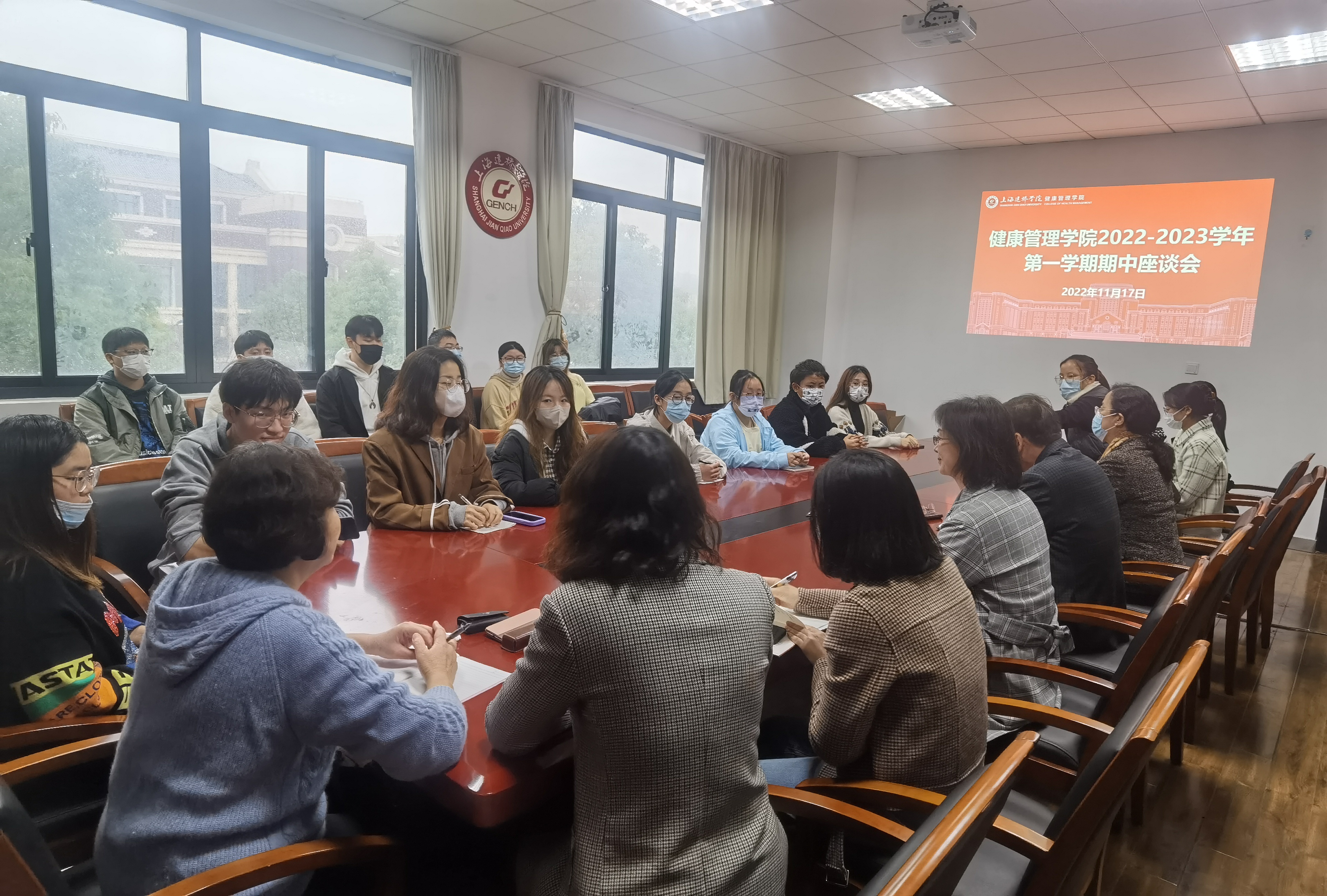 2022年11月17日下午,为了解学院的教学情况、学生的学习、生活状况,健康管理学院在247会议室召开了期中学生座谈会,听取学生代表对学院的意见和建议,会议由学院院长王志雄教授主持,学院党总支书记陈海燕、副书记孙俊芳、院长助理朱兴敏以及各系部负责人和学院办公室老师参加此次会议。会上,学生代表就教学管理、课程建设、校园安全、后勤服务、新生管理(早晚自习)等方面提出了不少意见和建议。学院领导班子认真倾听学生们的想法,并逐一解答了同学们提出的问题。王院长指出,针对同学们的合理化意见,学院会本着为学生负责的态度,积极与各系部沟通,力图解决能够马上解决的问题;对于不能马上解决的问题,学院将迅速研究、梳理并上报相关部门,努力为学生创造更好的学习、生活环境。 会后,王志雄院长对这次活动进行了总结,表示欢迎同学们经常监督学院各项管理工作,鼓励大家通过正规渠道提出建议和意见,学院将核实后进行整改,不断提高学院的教学质量和服务水平。