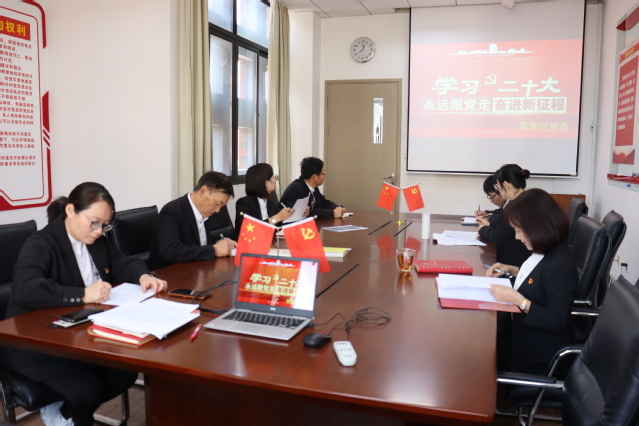 10月20日下午,职业技术学院外语学生党支部、综合学生党支部、商贸学生党支部在会议室 419开展党的二十大报告学习分享会,在认真学习党的二十大报告原文的基础上,各位学生支部老师联系实际情况分享自己的学习感悟,本次学习分享会由党委副书记马冯莉主持,党委书记王加宁以及三个学生党支部老师参会。党的二十大是在全国各族人民迈上全面建设社会主义现代化国家新征程、向第二个百年奋斗目标进军的关键时刻召开的一次十分重要的大会。习近平总书记在报告中提到:“青年强,则国家强,当代中国青年生逢其时”,也对新时代的青年予以殷切希望:“做有理想、敢担当、能吃苦、肯奋斗的新时代好青年。”王加宁书记指出:辅导员作为高校的思想政治工作教育者,在日常的学生管理工作当中,加强自身师德师风建设,落实好立德树人的根本任务,牢记育人的时代使命,为培养新时代的好青年贡献出自己的一份力。
