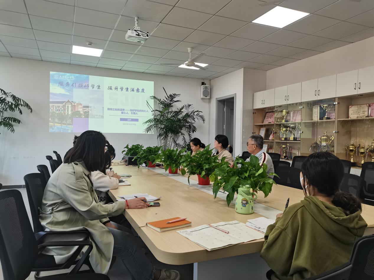10月10日下午,国际教育学院组织召开线下教学学工沟通会。院长梁月泉、党总支书记周英芬、副院长刘潇滢、副书记高祺、院办主任张文静、全体学工团队及行政教学秘书参会。会议由刘潇滢副院长主持。会上,分管领导、教学秘书、辅导员分别报告了各自工作的情况。首先,刘潇滢副院长介绍了本次教学、学工联动机制会议的背景和意义。一方面是为了提升学生工作和教学管理工作的协同管理效率;第二是加强教学、学工管理口的沟通与交流;第三是强调了学院的特殊性,主要围绕项目运行。接着汇报了新老生第一天上午线上上课情况,总体反馈良好、平稳有序开展。大部分班级课堂互动较好,个别班级个别学生存在缺勤现象,后续需多关注学生出勤情况。随后高祺副书记提到各年级平稳开课,针对个别学生缺勤现象严格管理,加强我院学生线上课堂秩序管理,提高出勤率和学院的学风建设,培养优秀学风。在讨论环节中,围绕如何提高工作效率展开了研讨,达成了教学与学生工作联动育人的具体措施;客观分析了存在的问题,并提出了解决问题的建议,做到“沟通效率,响应效率,处理效率,闭环效率。”周英芬书记在讲话中表示,本次以学生为中心,以质量为核心的教学学工沟通会开得非常及时,恰逢师