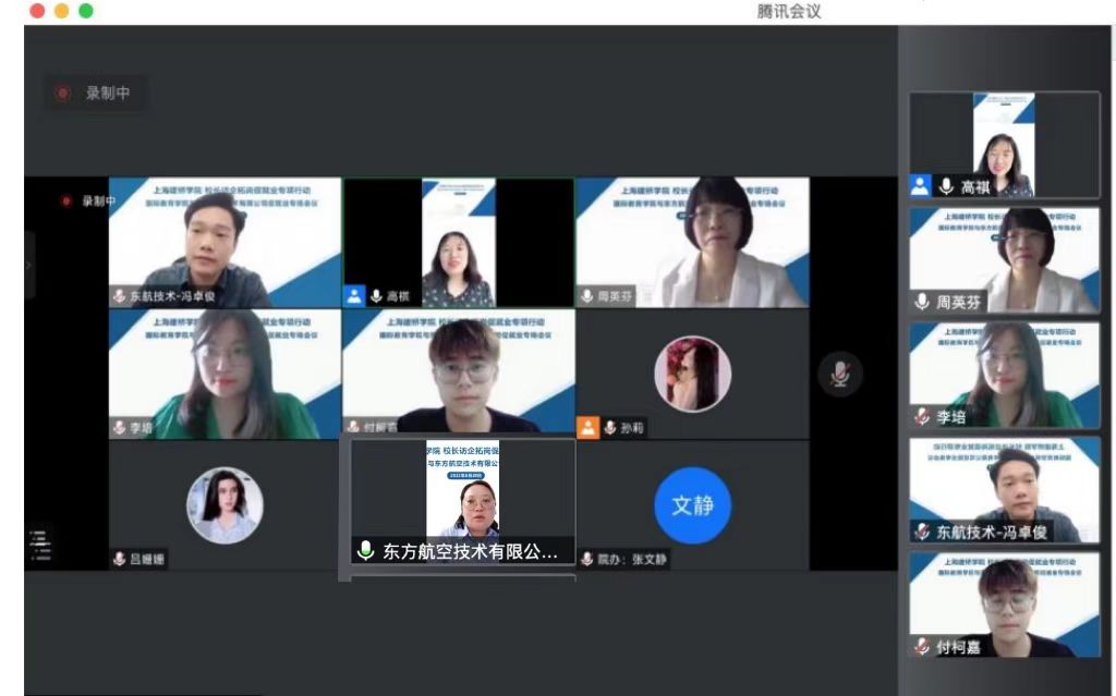 6月28日下午,国际教育学院与东方航空技术有限公司通过视频会议形式线上开展“访企拓岗”促就业专项行动。我院党总支书记周英芬、副书记高祺、机械设计制造及其自动化(航空机械维修中美合作)专业主任李培、院办主任张文静和教师代表参加,东方航空技术有限公司人力资源部朱静莹经理、冯卓俊经理及在企业就职的我校优秀毕业生代表严文泽与会。会议由党总支副书记高祺主持。东方航空技术有限公司系中国东方航空股份有限公司全资子公司,于2014年在上海挂牌成立,成为独立运行的航空维修服务供应商,目前在册员工14000余人,具备整机放行资格的专业技术人员3000余人、持有国内外航空器维修人员执照6900余人,在国内外近300个站点管控着超过740架飞机、管理发动机1600余台。目前我校机械设计制造及其自动化(航空机械维修中美合作)专业有20多名毕业生在东方航空技术有限公司就职。会上,周英芬书记感谢东方航空技术有限公司对学校和学院的大力支持,并简要介绍了学校办学历史、人才培养目标定位以及国际教育学院学科专业基本情况,表示希望通过双方交流与合作,共同培养适合企业岗位需要的应用型人才。东方航空技术有限公司朱静莹经理、冯卓俊