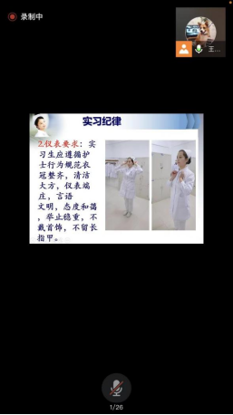 为做好护理实习生实习前的思想及岗前培训工作,提升学生的职业认同感、社会责任感和使命感,克服同学们实习前的焦虑情绪,便于同学们了解并尽快适应临床实习生活,以优异的成绩完成临床实习生活,健康管理学院于2022年6月30日在腾讯会员有召开2023届护理系实习动员大会。健康管理学院党总支副书记孙俊芳、院长助理王慧娟、各实习医院指导老师朱兴敏、孙振洁、衣玉丽、张序文、李中平、2019级护理学专业辅导员王培雨、2020级护理专业辅导员卞浩以及全体2023届毕业生参加了本次会议。首先,由健康管理学院院长助理王慧娟老师为同学们介绍实习安排情况,对实习期间的就业招聘、研究生报名、护资报名及考试时间节点做提醒,并对实习纪律、安全做提醒、要求和强调,要遵守实习纪律,注意实习期间的言行举止,不得因个人原因增加患者的痛苦,谨遵职业操守和职业规范,严格遵守学校和实习医院的各项规章制度。然后,健康管理学院党总支副书记孙俊芳老师对学生实习、就业等多方面提出要求和建议,强调同学们进入到临床实习岗位上后要注意转变身份和意识,同学们进入实习岗位后既是要认真学习、虚心请教的学生,又是肩负人民群众生命健康和安全责任的护士、社会