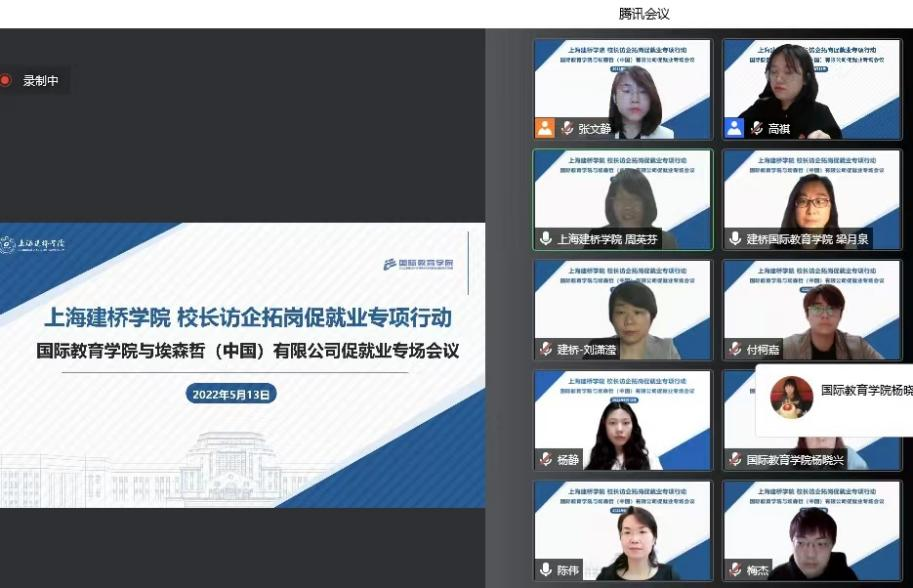 为深入落实学院毕业生就业工作“人人工程”,加快健全高校毕业生市场化社会化的就业创业工作机制,深化校企合作,开拓更多就业创业岗位和机会,5月16日下午,商学院工程管理专业开展了“凝心聚力谋共识,访企拓岗促就业”的走访企业活动。受疫情影响,本次专题活动采用了视频会议形式开展,学校副校长陈伟、学院党委副书记俞海燕、工程管理系系主任李培、工程管理系22届毕业班辅导员陆军、何云及上海建为历保科技股份有限公司(简称建为历保)的领导参与了本次会议。会议由李培老师主持。会议首先由陈伟副校长致辞,陈校长代表学校对建为历保表示感谢,希望通过校企合作的平台为学校的教学提供更多的帮助,同时也希望和对方一起搭建一个推介毕业生的平台。接下来,建为历保的欧阳斐经理介绍了公司的基本情况,基于之前良好的校企合作,就学生实习就业,表示公司会提供更多的就业岗位。针对不同的岗位需求,提出了相应的招聘要求。随后,工程管理系系主任李培介绍了本专业的人才培养方案和22届毕业生的学习实践等情况以及企业参与人才培养与教学情况。李培老师表示,本专业人才培养方案重在把学生的培养成专业基础扎实、实践能力优秀的应用型本科人才。紧接着,双方就校
