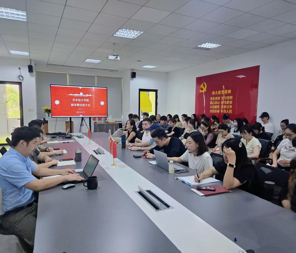 9月5日上午,艺术设计学院召开新学期首次全院大会。会议由葛洪波院长主持,王丽佳书记、陆军副书记及全体教职工参会。会上,葛院长通报了2025年的招生情况及2025届毕业生的就业率情况。据悉,学院新生报到率再列全校第一,毕业生就业率达99.83%,实现“进口—出口”双优开门红。改革发展是学院工作的重中之重,葛院长指出,学院正积极推进 “一院一策” 综合改革,聚焦产业学院建设。在暑假期间,学院领导班子与教师为专业培养改革多次研讨修订方案,积极对接企业,目前正在探索成立产业学院,旨在通过产教融合提升人才培养质量。他号召全体教职工要摆脱“被动跟跑”思维,主动拥抱变革,以主人翁姿态投身产业学院建设、专业升级改造与课程重构,力争在2025年度KPI考核中交出更高质量的答卷。王书记首先对暑期工作进行简要回顾。他指出,暑期期间,学院承接了多项临时性重点任务,每一项任务的圆满完成,都离不开全体教职工的辛勤付出。无论是坚守岗位统筹协调的中层干部,还是主动担当落实细节的一线教职工,大家都以高度的责任感、饱满的工作热情和高效的执行能力,攻坚克难、协同配合,充分展现了学院教职工队伍过硬的职业素养和良好的精神风貌。