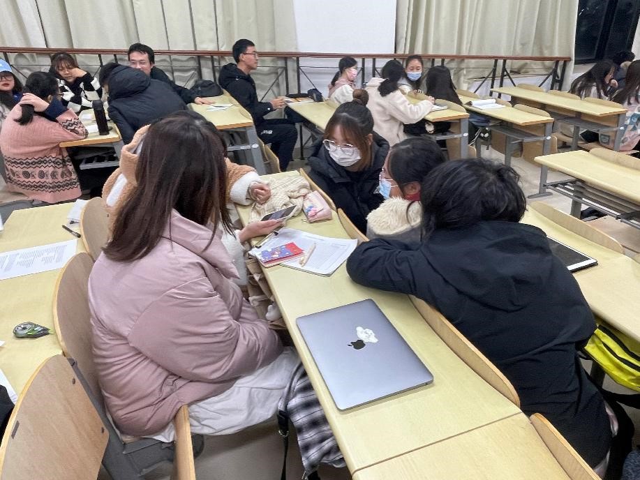 国际教育学院党总支书记周英芬为商学院&国际教育学院中党学员授课