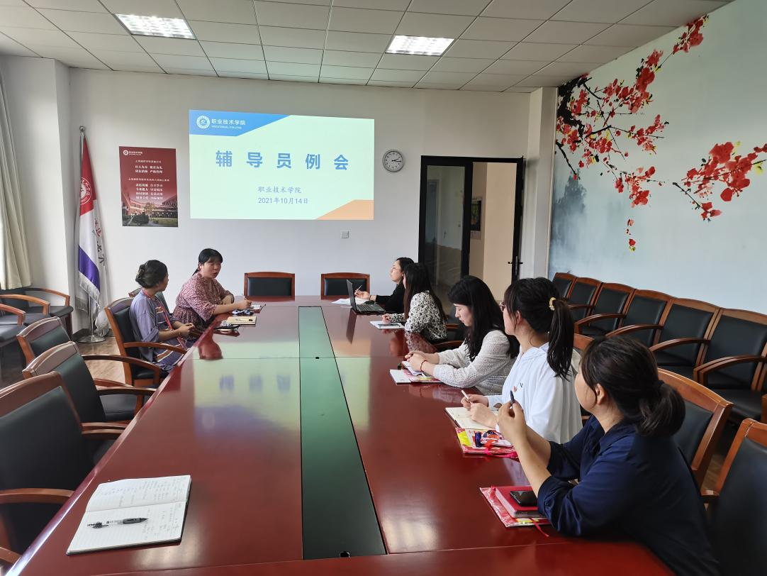 10月14下午,职业技术学院召开第七次党委会。学院党委委员谷伟、汤以范、马冯莉、陈少东、刘梦影、廖艺晗出席,会议扩大至全体党支部书记,会议由学院党委书记王加宁主持。会议集中学习校党委印发的《2021年秋季学期工作要点》,逐条分析研究工作重点,指明工作方向,在校党委工作要点的基础上,结合学院实际,修订了《职业技术学院2021年下半年党委工作补充要点》并予审议。会议原则同意《职业技术学院2021年下半年党委工作补充要点》中各项重点工作安排。会议强调,下半年学院党委重点工作要结合校党委秋季工作要点既定的各项重点工作任务,以习近平新时代中国特色社会主义思想为指导,深入学习习近平总书记“七一”重要讲话精神,学习宣传贯彻新时代党的教育方针,立足“十四五”开局起步,坚持为党育人、为国育才,抓好用新思想铸魂育人这一主线,深入开展党史学习教育,聚焦立德树人根本任务,推动学院各项工作有效开展。学院要结合校党委工作要点,学透要点重点,把握学院实际,开展有职业教育特色的党建工作。会议对新生专业导师、党员教师下寝室结对子等我为师生办实事活动安排进行了研究。会议要求要继续做好2021级新生专业导师进班级活动,遴选