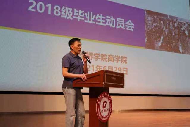 商学院2022届毕业生共有1777人,为帮助各位同学早知晓、早启动、早规划、早行动,确保未来学年的毕业实习、毕业论文、学位授予、择业就业等顺利完成。商学院提前部署,于6月29日在大礼堂组织召开2022届毕业生毕业动员大会。大会分为两场举行,商学院院长高健、党委书记刘爱香、副院长尹卫华、副书记俞海燕以及系主任、辅导员和全体毕业生出席本次会议。本次会议由刘爱香书记主持。高健院长首先代表学院对全体毕业生毕业、就业工作进行了动员和部署,高院长在会上提到“三个务必”,提醒同学们务必入脑入心, 务必自测自检(学分绩点、计算机、英语),务必纠偏纠错,对自己的毕业负责。同时期望同学们能做好职业生涯规划积极投入到就业求职中,尽早树立正确的择业观、就业观,努力奋斗,将个人梦想和伟大的中华民族伟大复兴的中国梦结合起来。尹卫华副院长从完成学业、了解自己的计划完成情况、学籍异动和毕业论文毕业实习四个方面对同学们提了相关要求,详细讲解了拿毕业证和学位证的条件,同时强调了毕业论文是大学学业最重要的实践学习环节,希望同学们对自己高标准严要求,严格按照老师的指导认真完成论文内容。俞海燕副书记从安全教育角度出发,叮嘱同学