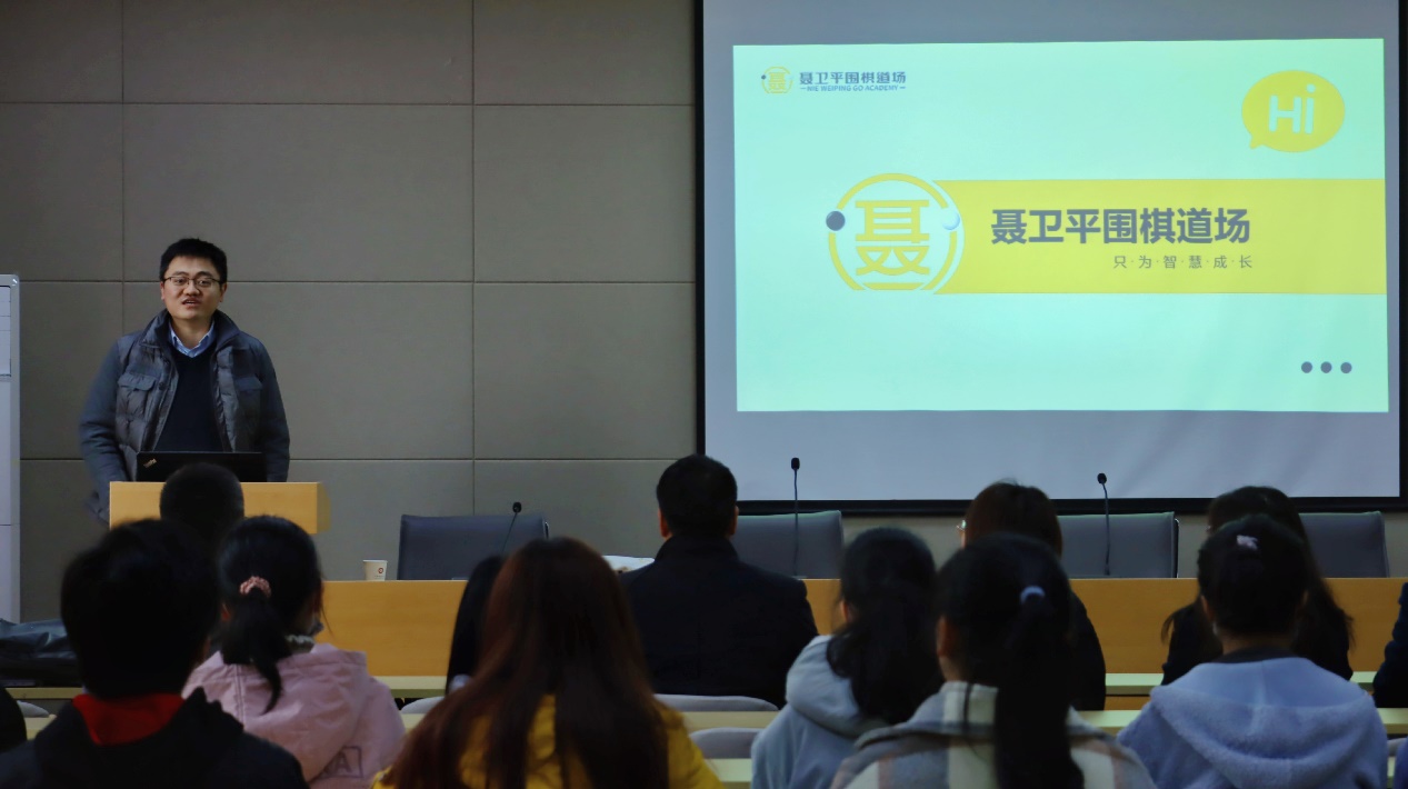 聂卫平围棋道场是由“棋圣”聂卫平九段,本着“以棋育人”的初心于1998年创办的专业围棋教育机构,隶属于北京弈有围棋文化传播有限责任公司,经历20余年的探索发展,聂道已经成长为中国围棋教育培训领域颇影响力的品牌,旗下业务包括围棋教育培训、职业俱乐部运营及围棋赛事、出版物等,覆盖围棋教育全产业链。2021年3月7日,聂卫平围棋道场(以下简称聂道)教学管理中心负责人与产品经理樊麾、师资培训部负责人贾倩、人力资源总监刘云霞来校参访,并与新闻传播学院党委书记冯修文、围棋系主任孙德常、辅导员贾存忠老师等洽谈围棋专业合作建设事宜,确定了双方合作意向框架。作为聂道的代表樊麾老师在新闻传播学院308会议室,与传播学(围棋)专业、学前教育专业和围棋社的部分同学进行了交流。樊老师介绍了聂道的基本情况、历史发展、教学师资和培训体系。同学们惊叹道聂道作为围棋培训机构,其在教育方面的专业性已不亚于全国知名的专业学科教育机构。2016年举世闻名的人机大战,樊老师是总裁判长,他特别跟同学们分享了他和谷歌人工智能AlphaGo的故事,也交流了对人工智能的看法。围棋传播专业的同学在座谈会后说道,现在的AI已经达到了人类几