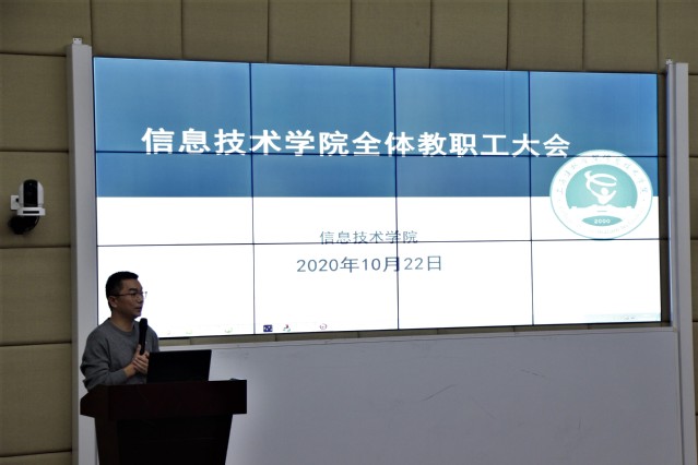 1111MicrosoftInternetExplorer402DocumentNotSpecified7.8 磅Normal02020年10月22日下午,信息技术学院在三教222召开全院教职工大会,学院党政领导班子和全体教职工出席参加 ,同时进行在线腾讯会议直播。会议由学院党委书记张巍主持。会上,张巍书记为大家介绍了进入信息技术学院大家庭的两位新老师,并对他们表示了热烈的欢迎,同时对各位年长的老师表达了重阳节慰问;在党建工作方面,张巍书记强调各个党支部要积极过好党支部生活,做好党支部生活记录,督促各位党员老师积极参与学习强国的学习,力争上游;在经费使用方面,张巍书记强调严格规范项目经费的使用,真真正正做好项目的建设工作。徐娜副书记介绍了新生开学的报到人数,报到率等报到情况,以及新生辅导员的带班分配表,期望各位辅导员和各位老师积极密切联系,保证教与学的高质量进行。学院副院长矫桂娥通报了开学伊始的教学检查结果,提醒各位老师上课之前做好各项准备,避免各种类型的教学事故的发生;其次,矫桂娥副院长督促各位老师及时提交教学文档,做好各项教学工作,迎接即将到来的期中教学检查;同时,做好2017级毕
